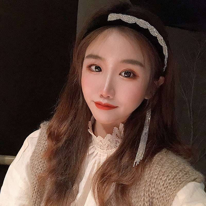 网红百搭满钻长流苏发箍女气质优雅丝绒头饰宽边外出防滑压发头箍