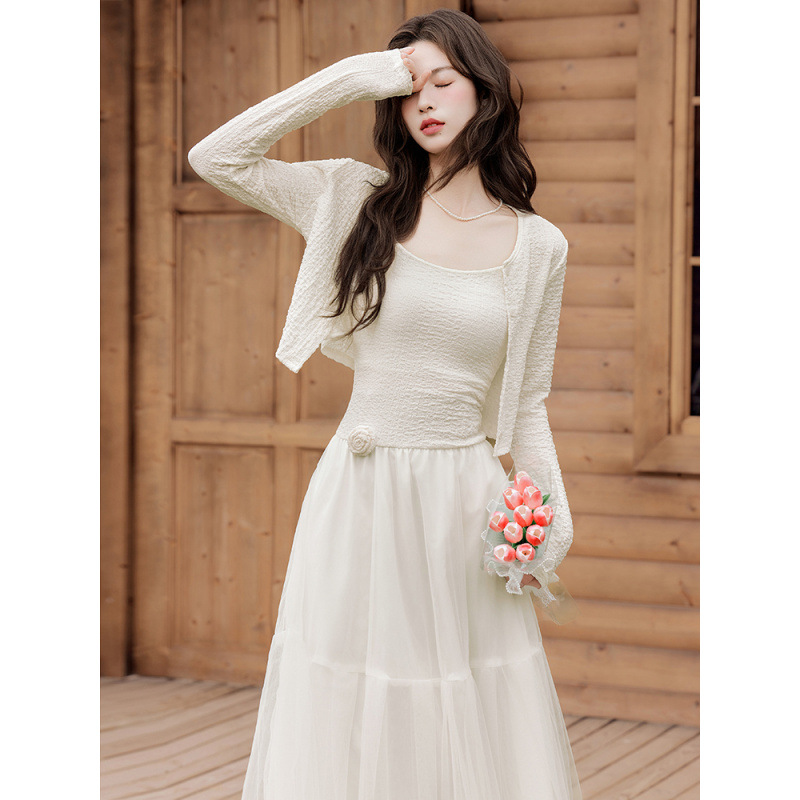 法式网纱拼接吊带连衣裙夏季2025新款温柔风超仙氛围感纱裙两件套