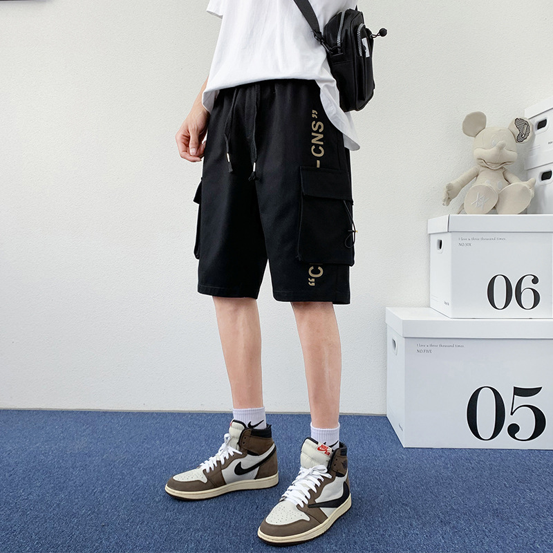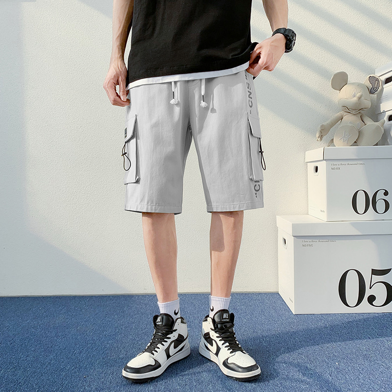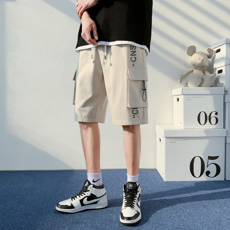 美式男士短裤工装夏季休闲国潮宽松冰丝薄款运动五分沙滩裤子