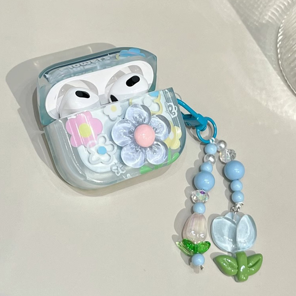 适用airpods3保护套ins立体花朵带挂件airpodspro2耳机套三代软壳