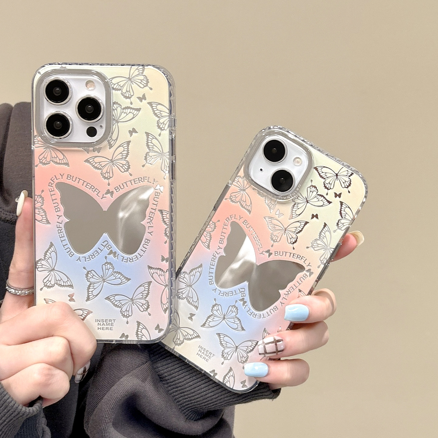 ins渐变温柔蝴蝶适用15promax手机壳14pro苹果13镜面12/11防摔女