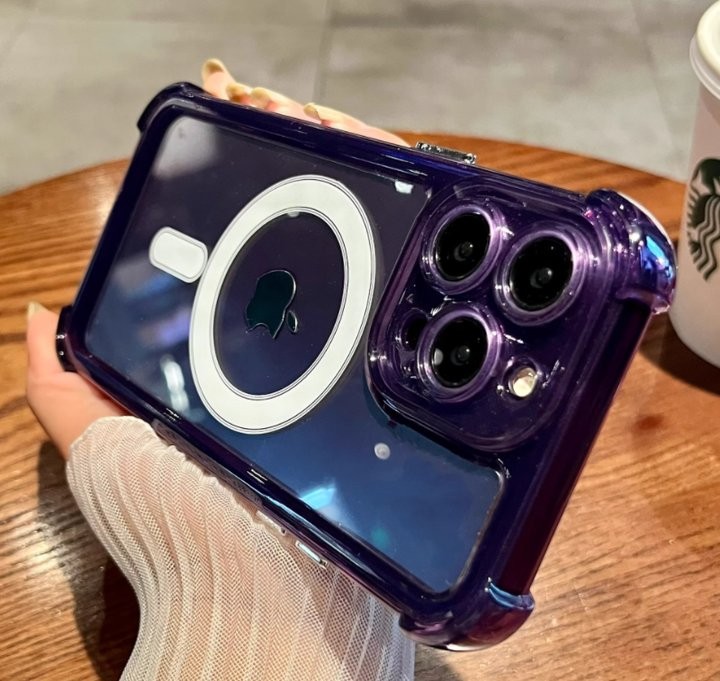 - 四角防摔简约透明磁吸-紫色