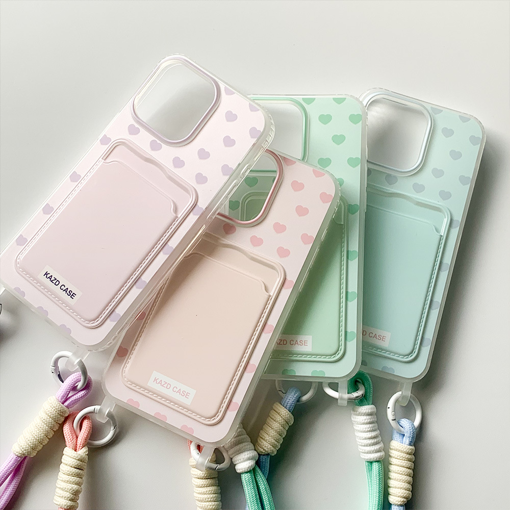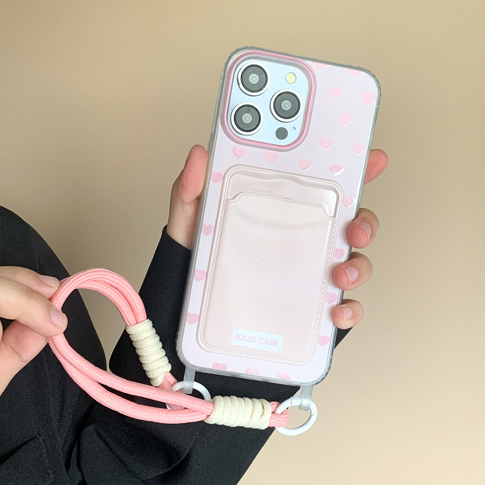 - 马卡龙满屏爱心卡包带挂绳-粉