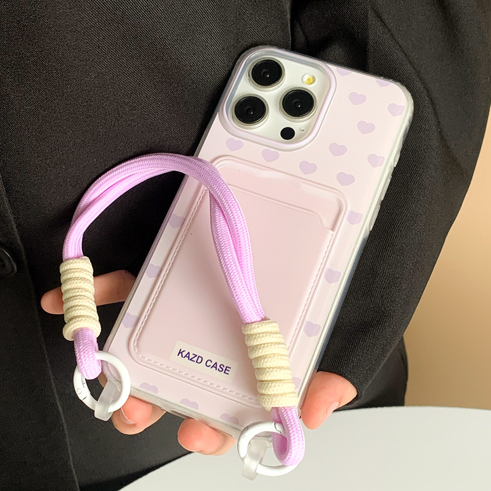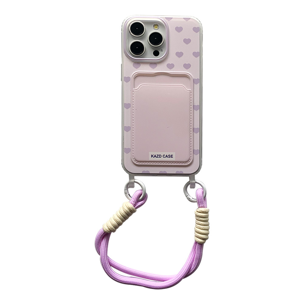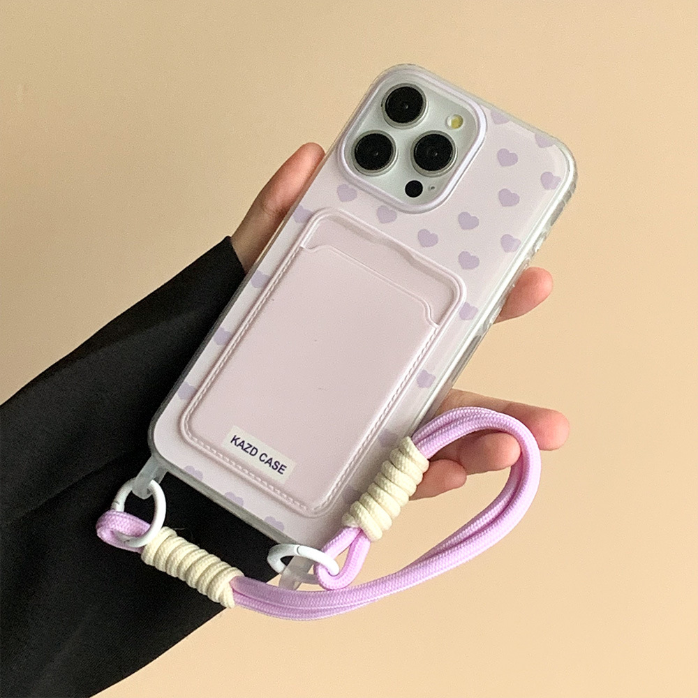 - 马卡龙满屏爱心卡包带挂绳-紫