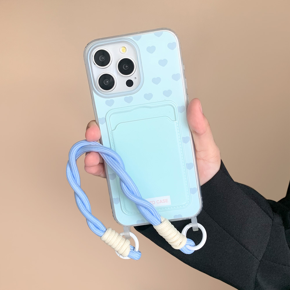 - 马卡龙满屏爱心卡包带挂绳-蓝