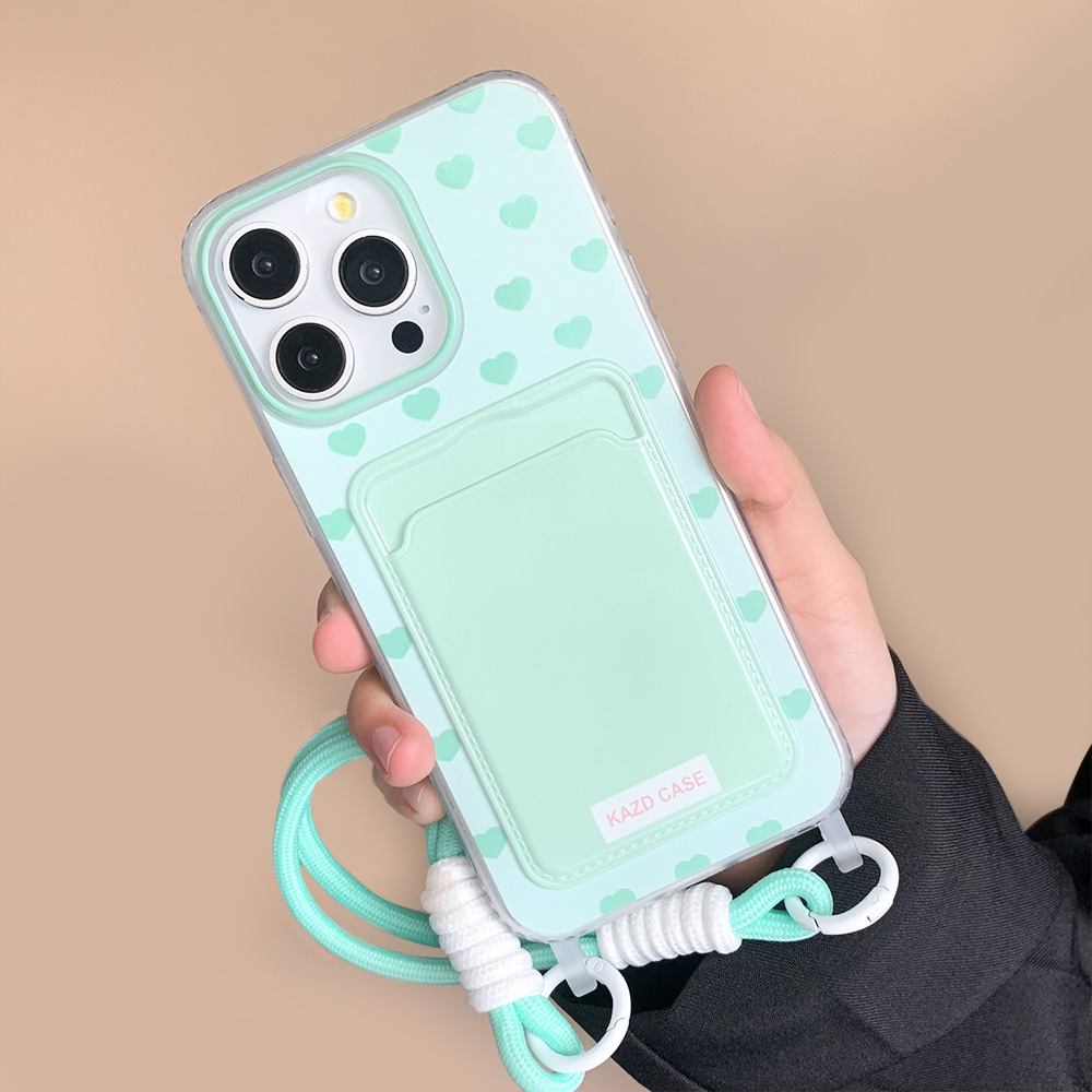 - 马卡龙满屏爱心卡包带挂绳-绿