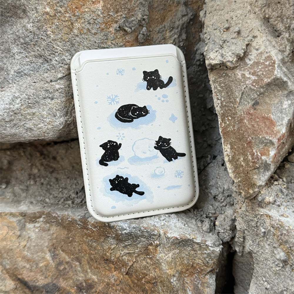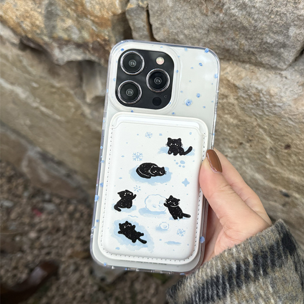 可爱卡通白熊苹果15ProMax磁吸卡套iPhone14情侣13卡包12个性11女