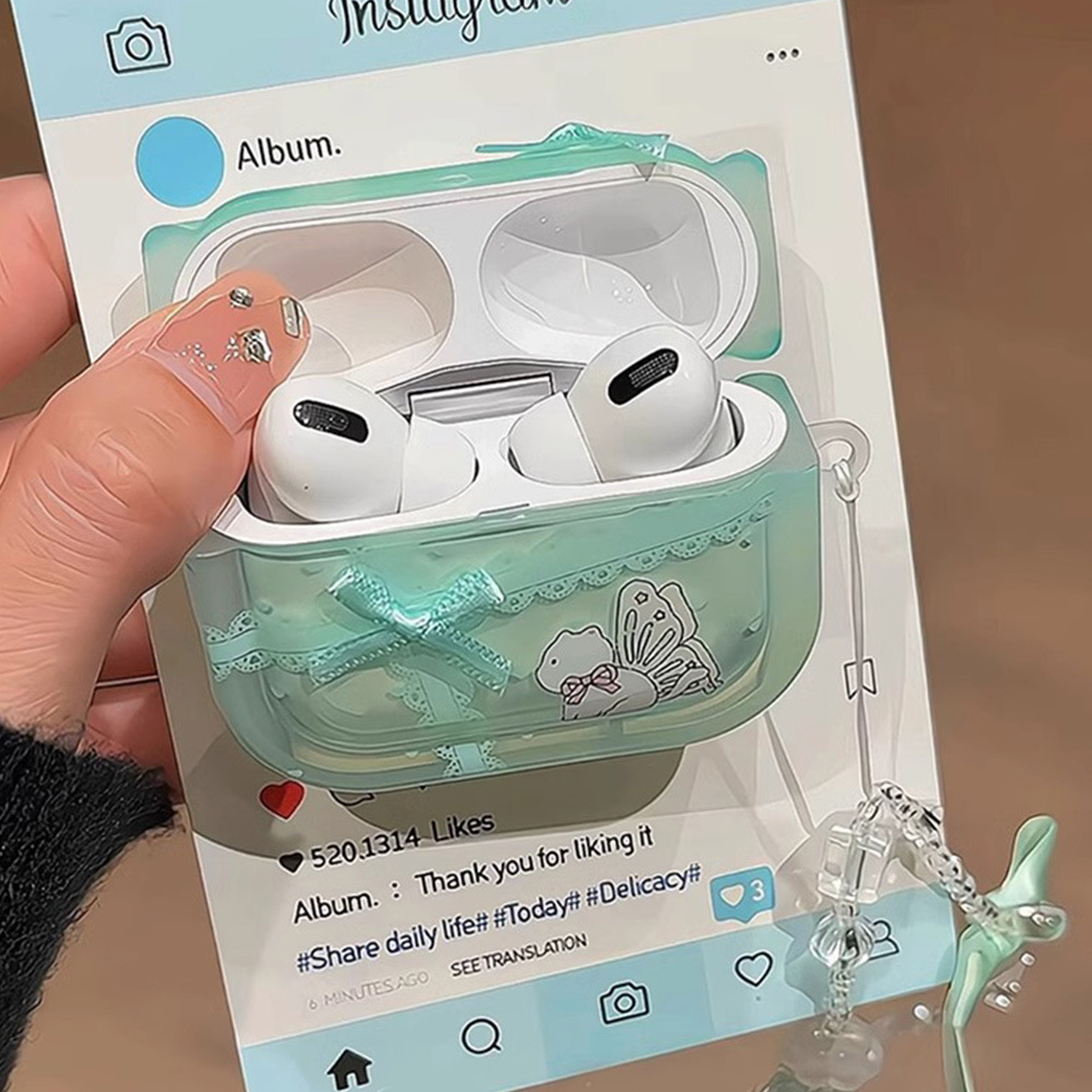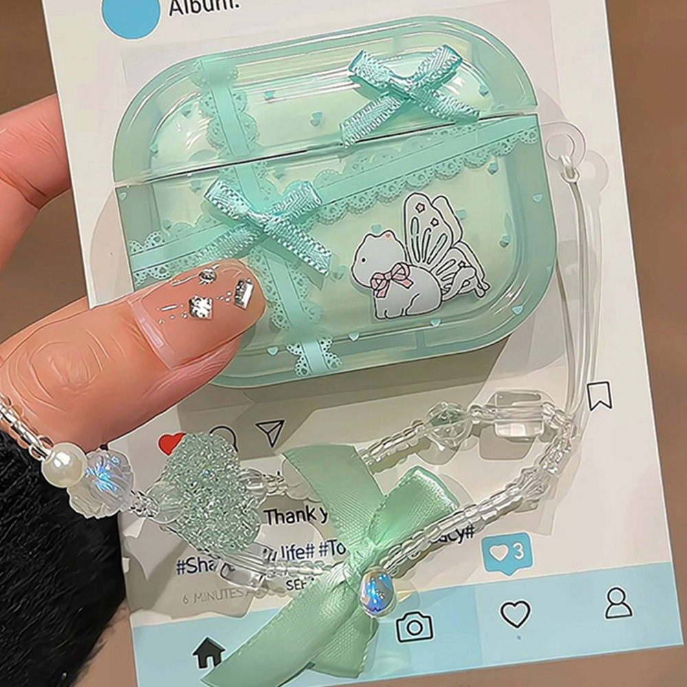 清新薄荷绿小猫咪带链条适用airpodspro2保护壳新款3代2代保护套