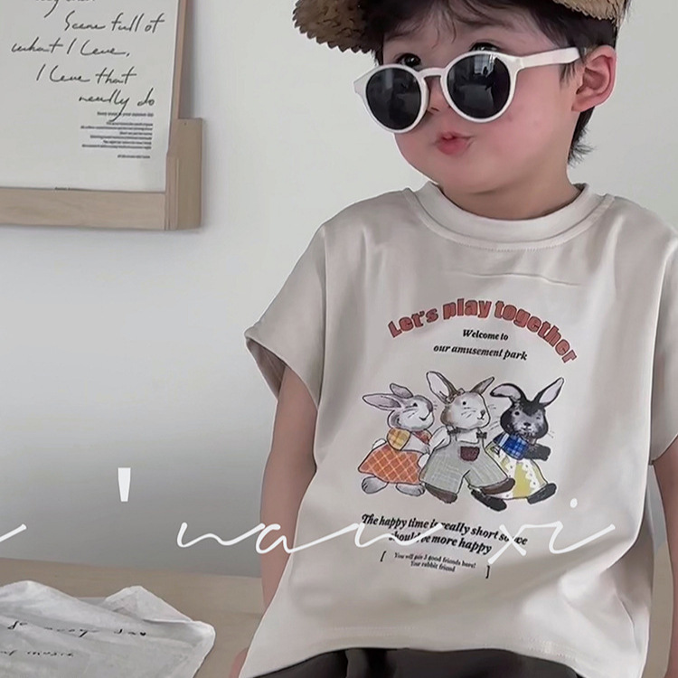 24夏新品男女童T恤圆领数码印花上衣落肩袖3-8岁宝宝休闲背心