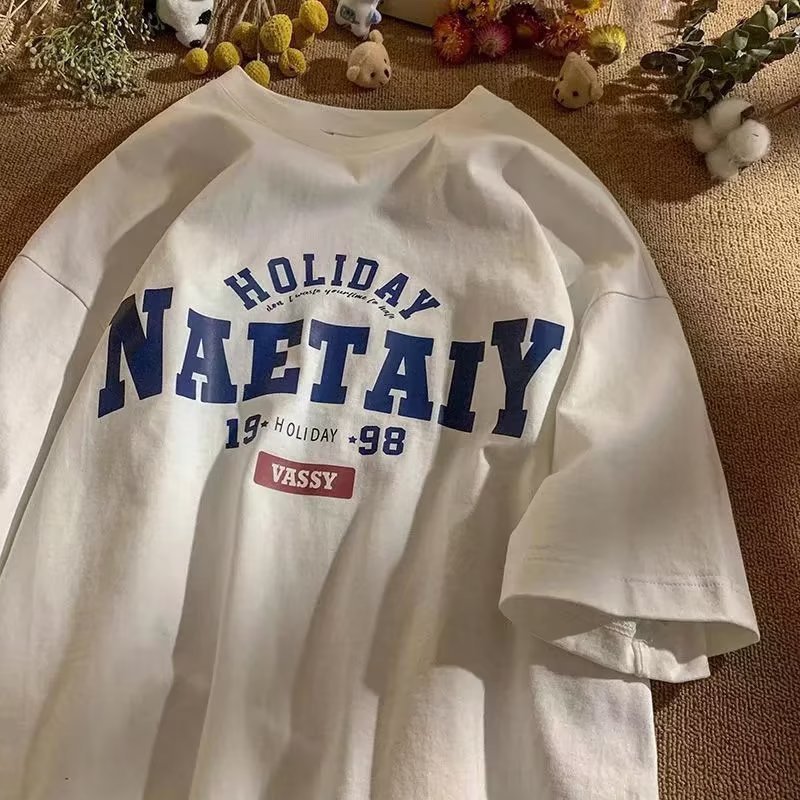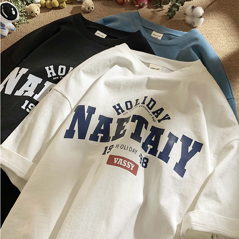 日系复古动漫印花黑色短袖T恤女夏季新款宽松上衣