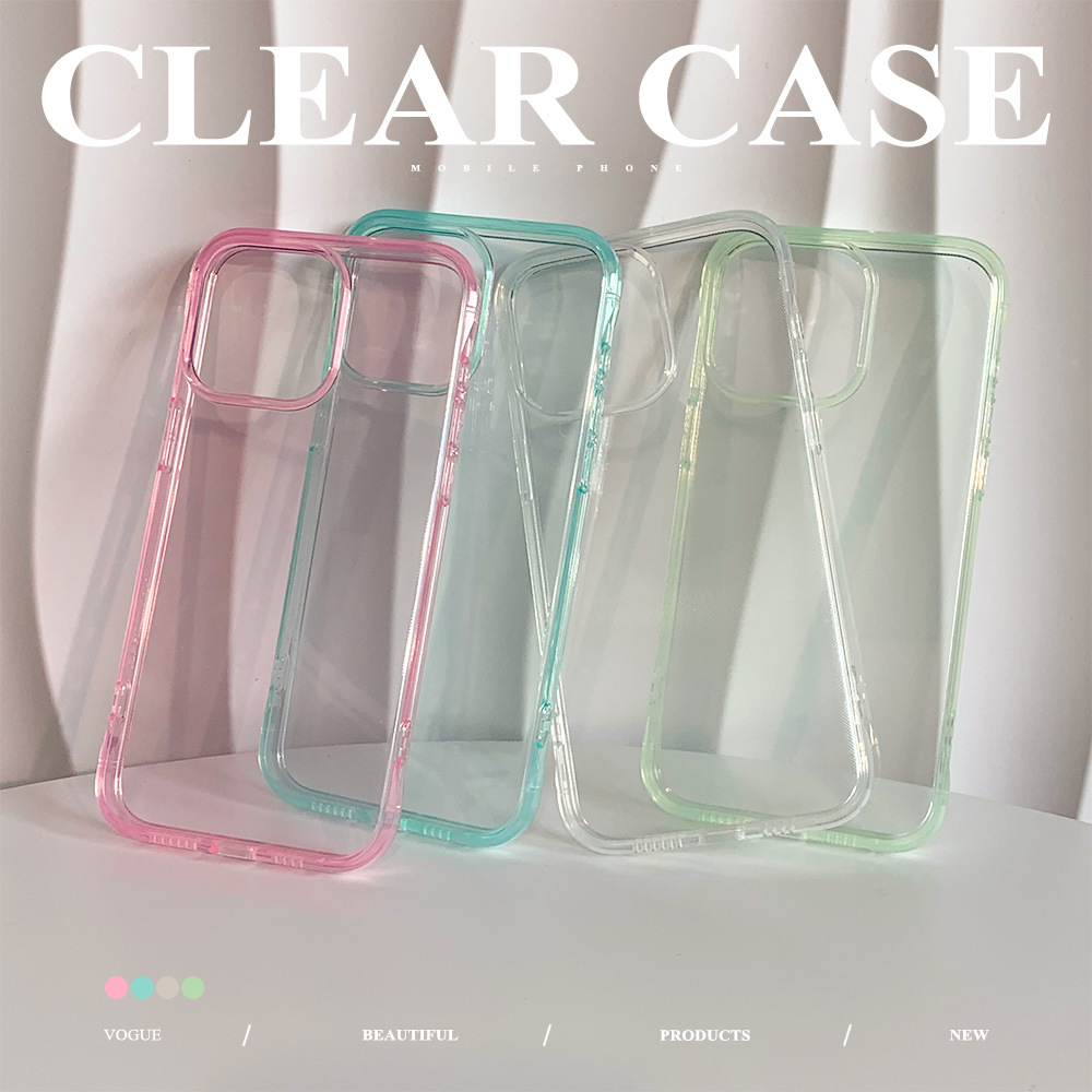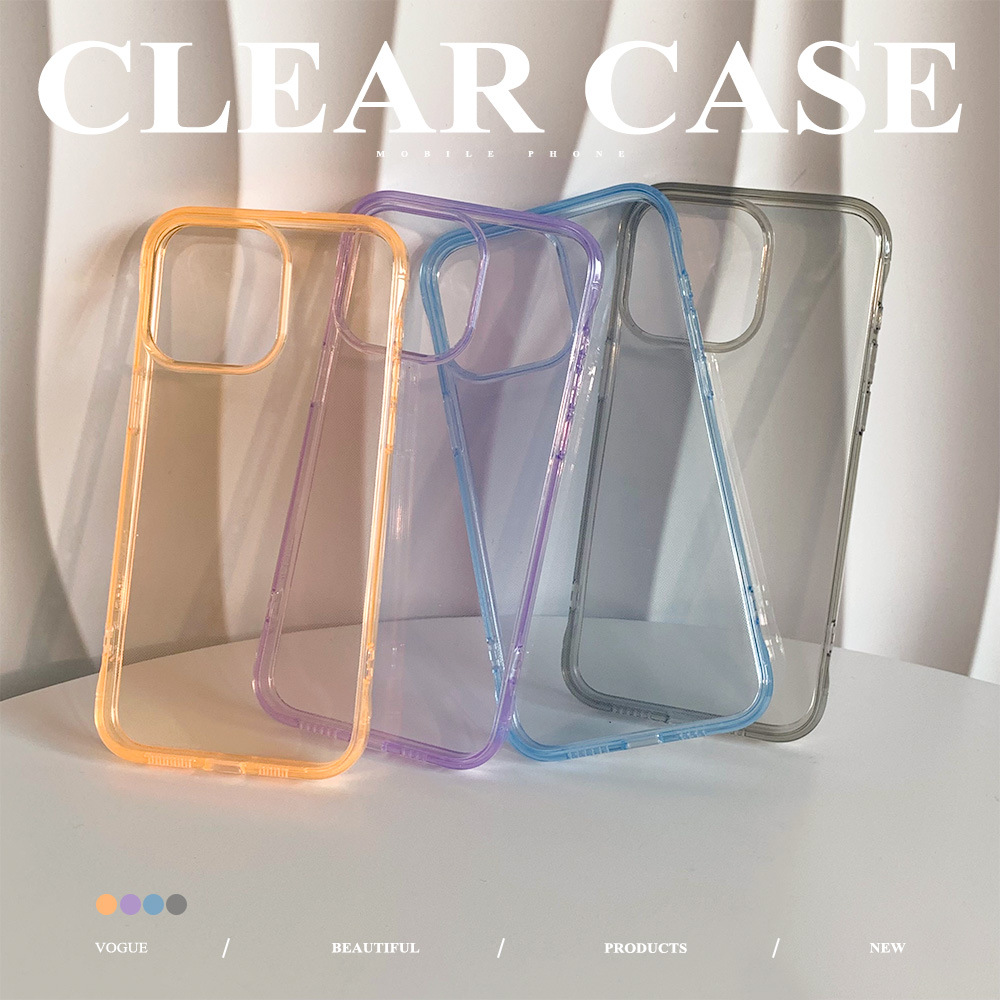 透亮纯色iphone15promax手机壳14苹果13promax彩色保护套大孔软壳