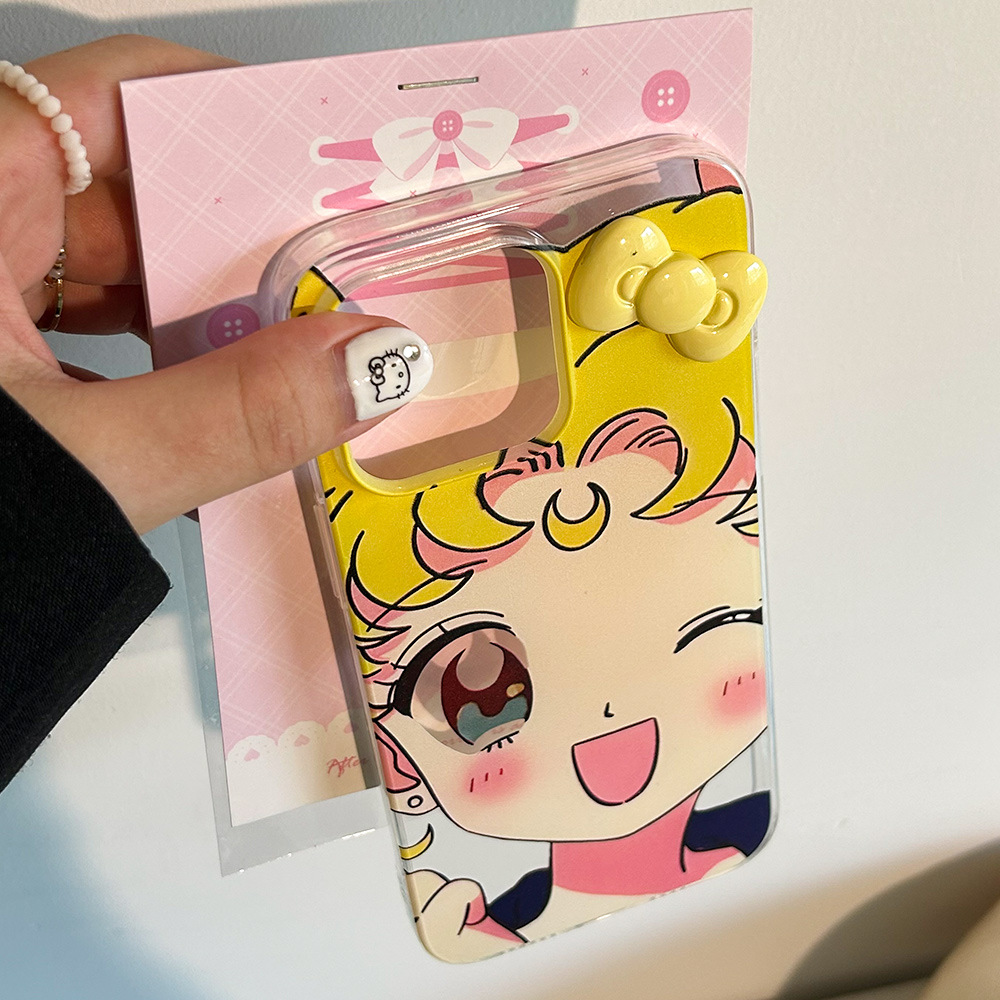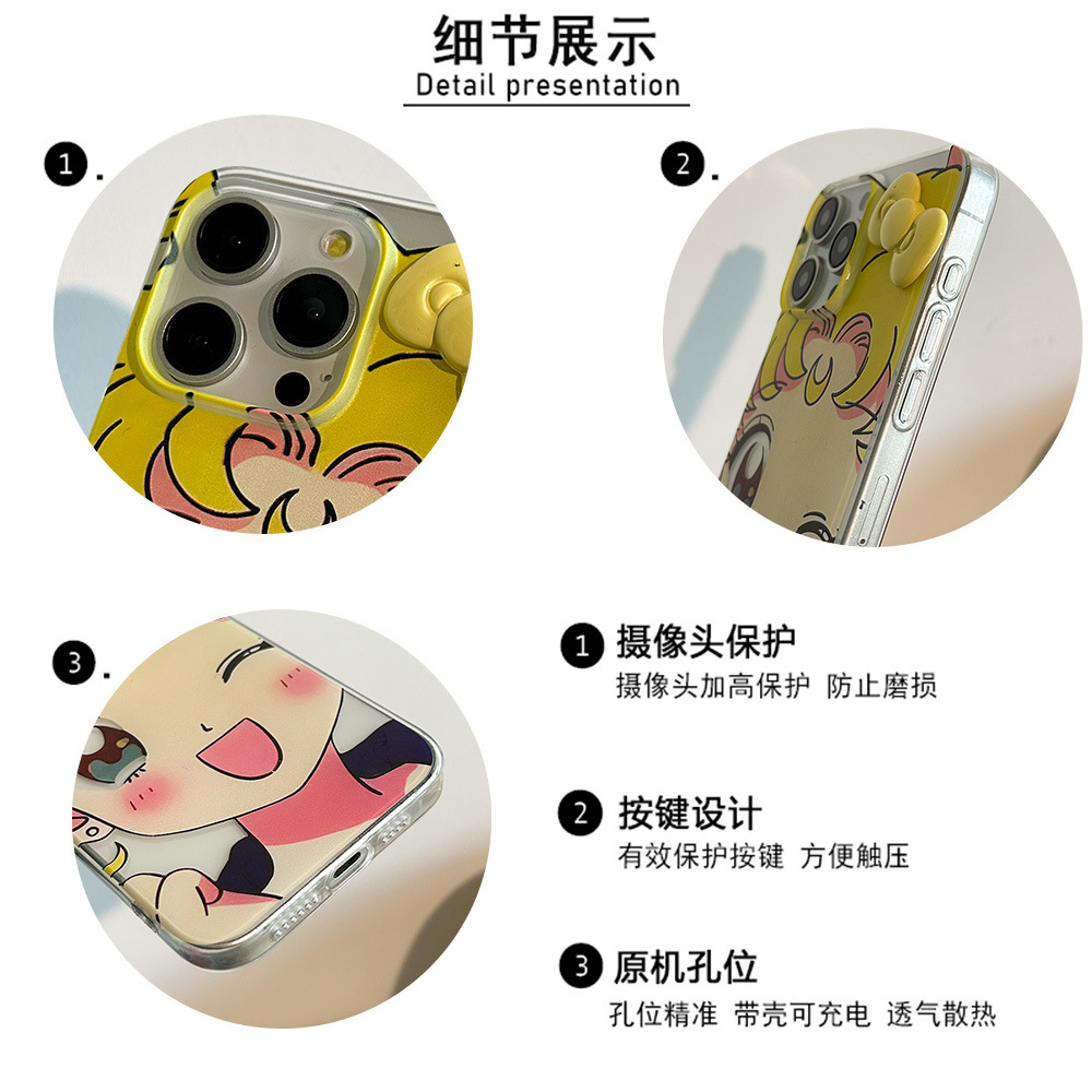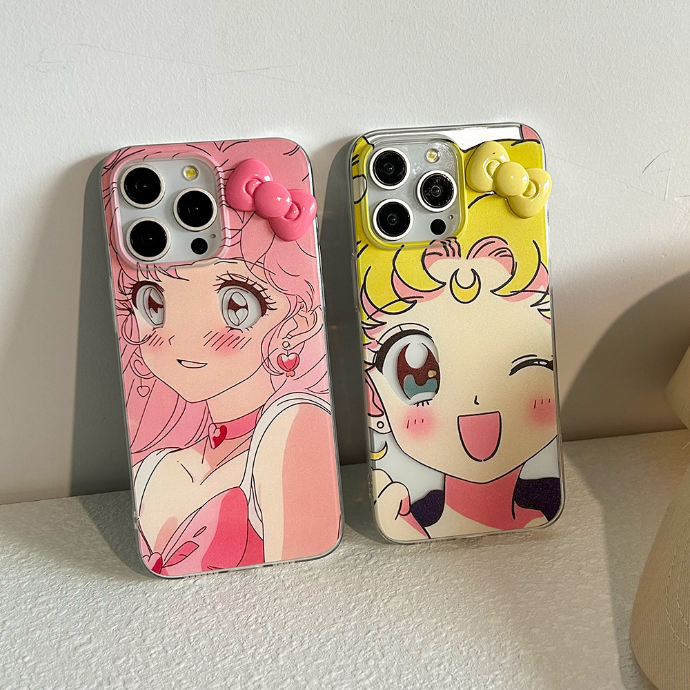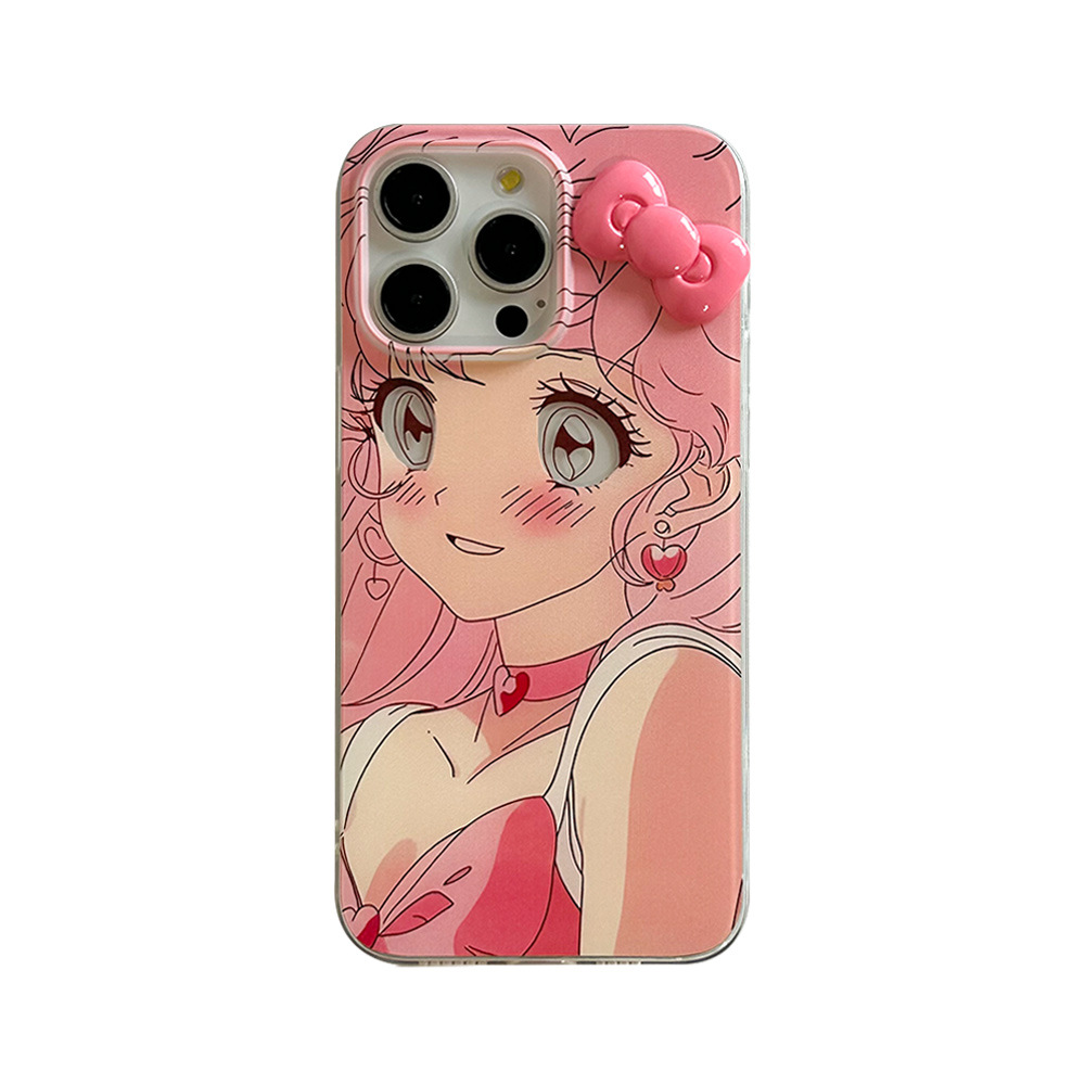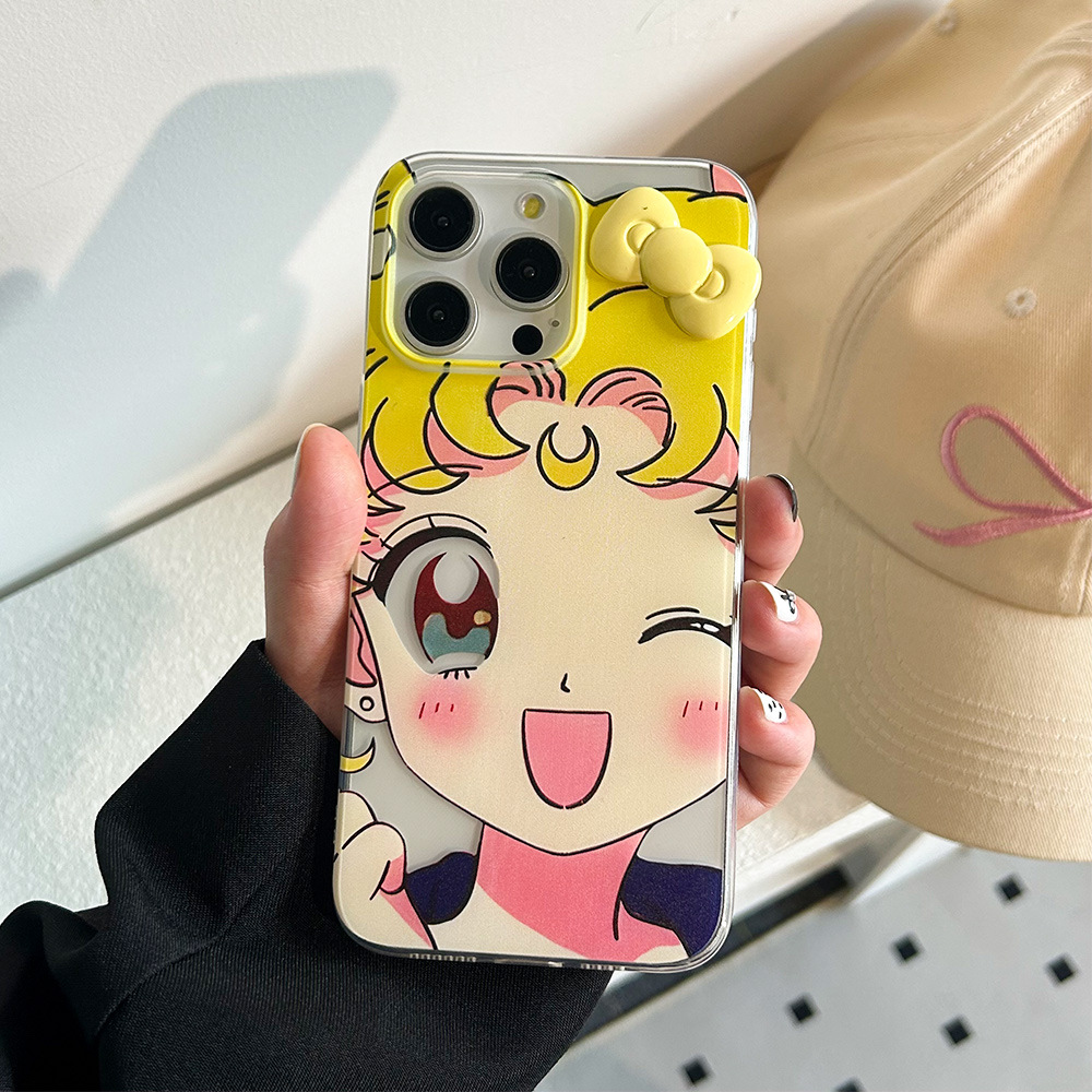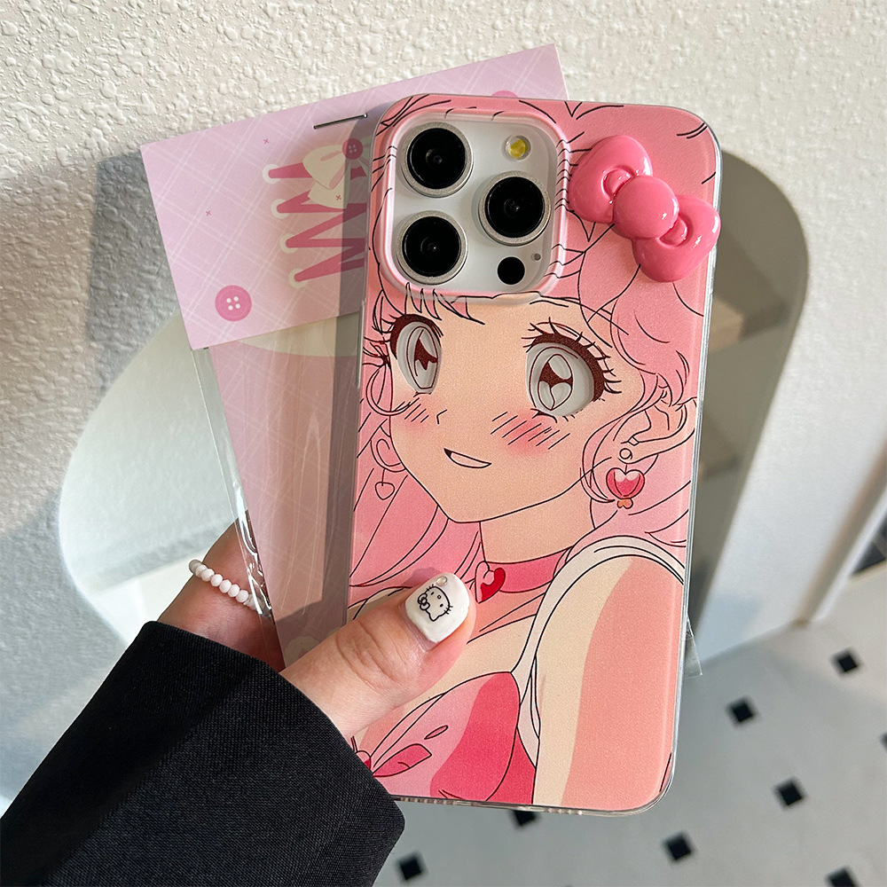 卡通美少女iPhone7plus手机壳xs透明壳15pro大孔14保护套12蝴蝶结