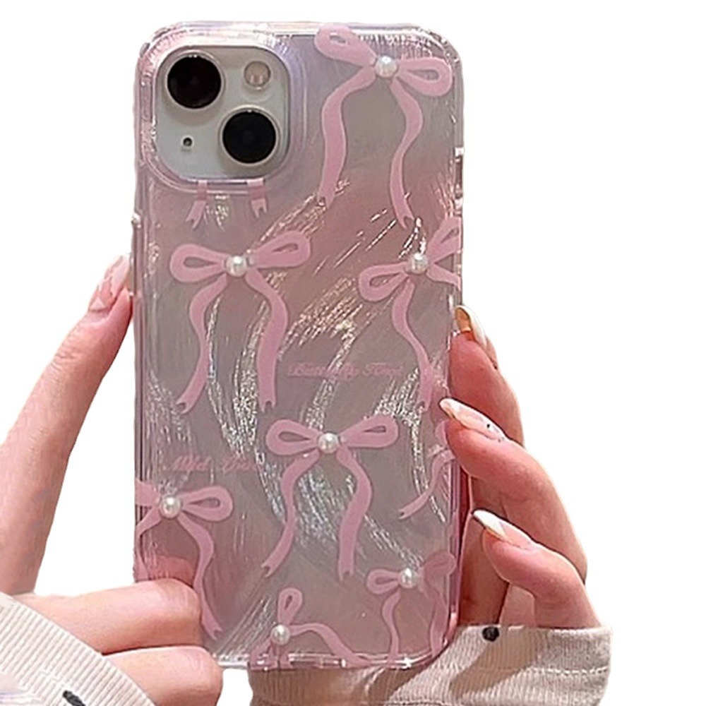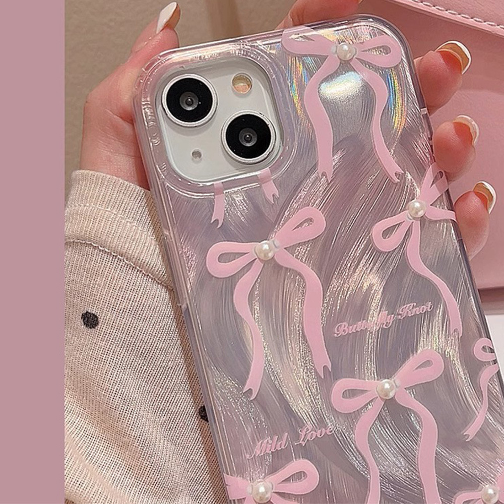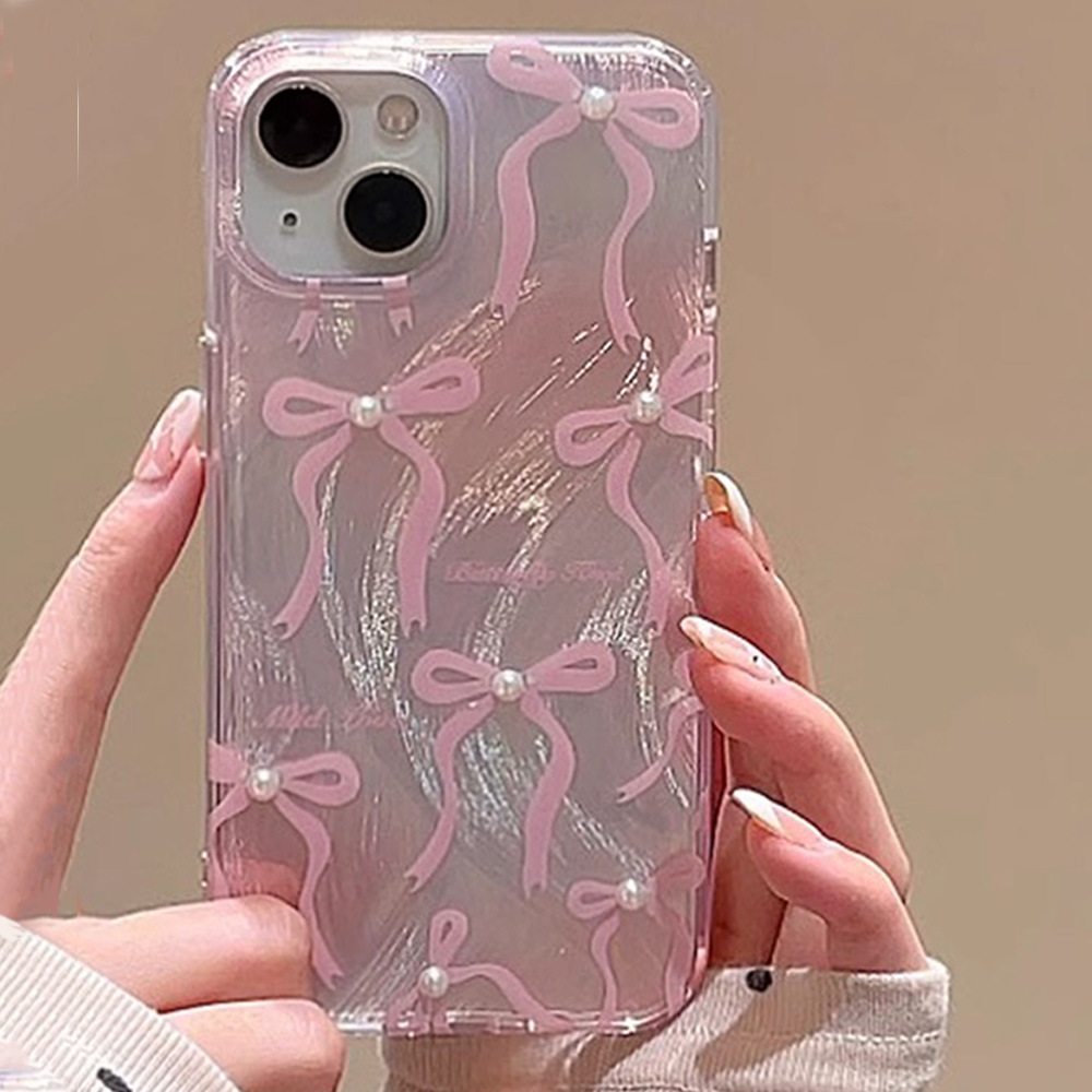 粉色珍珠蝴蝶结13pro苹果手机壳15羽纱IMD14plus保护套XR渐变色XS