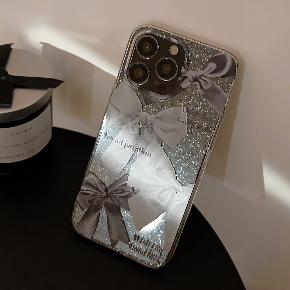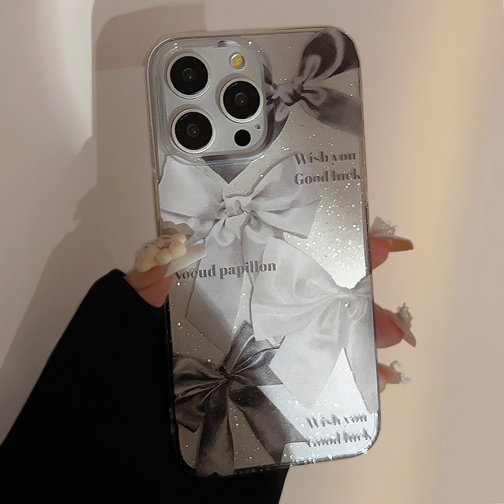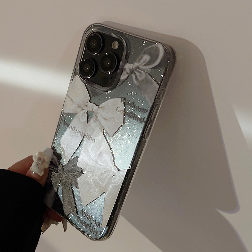 新款iphone14plus手机壳闪粉ins蝴蝶结苹果15promax透明11防摔13