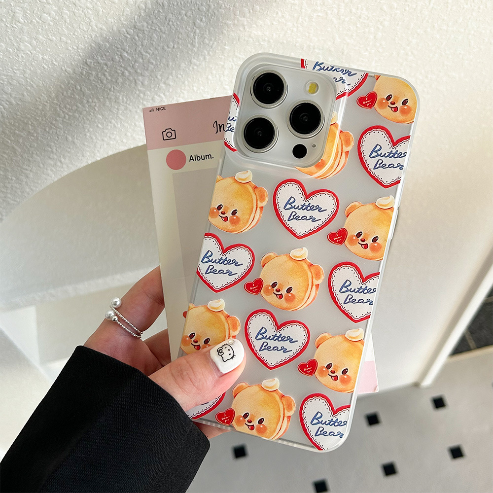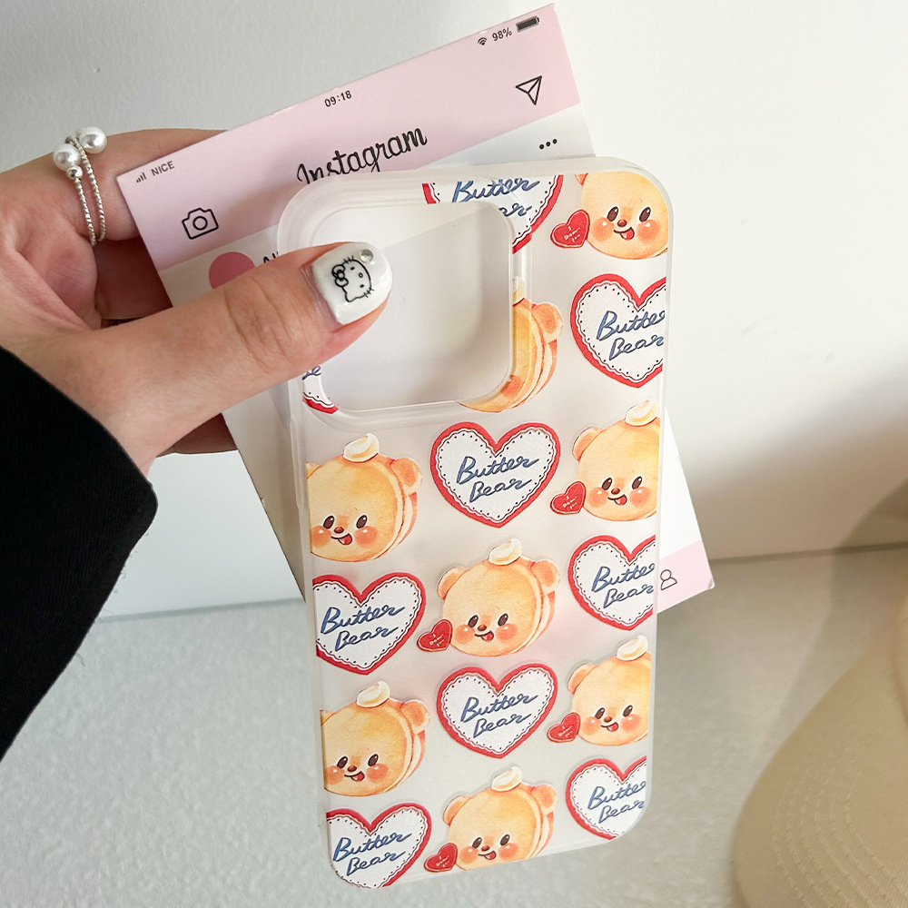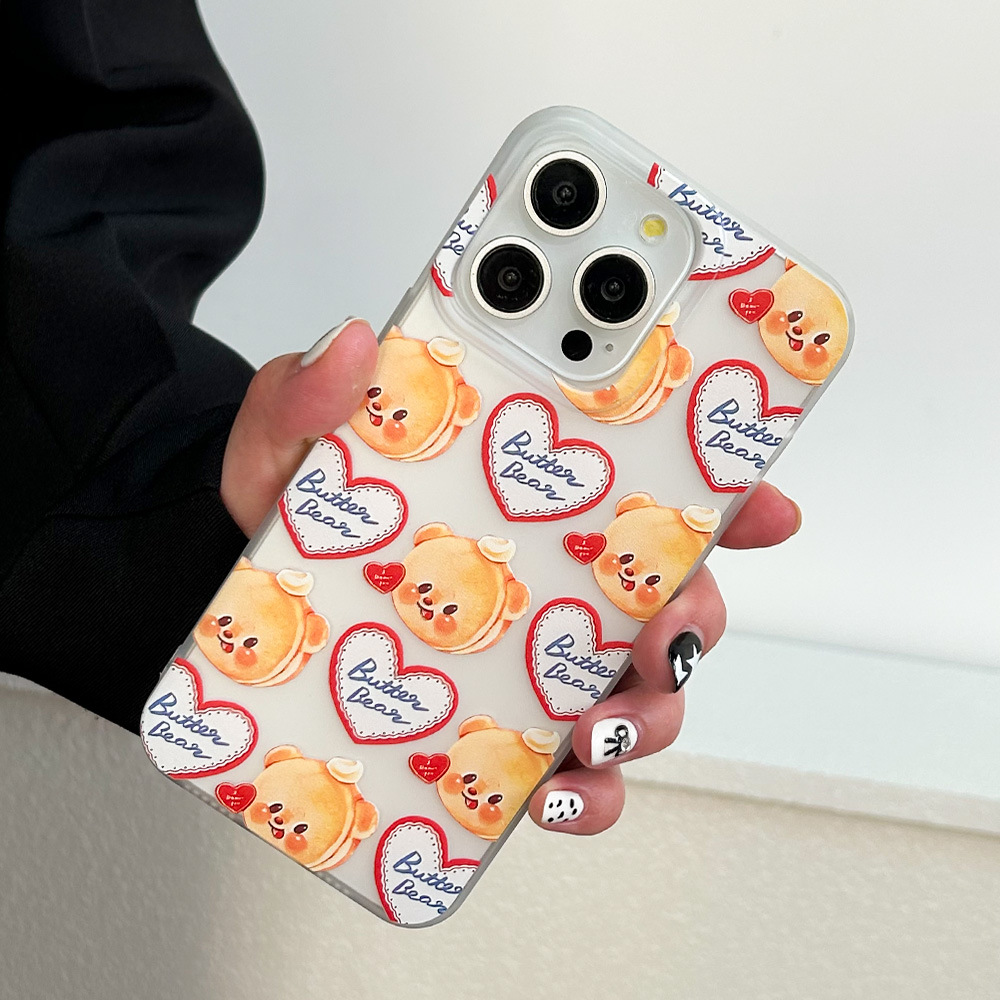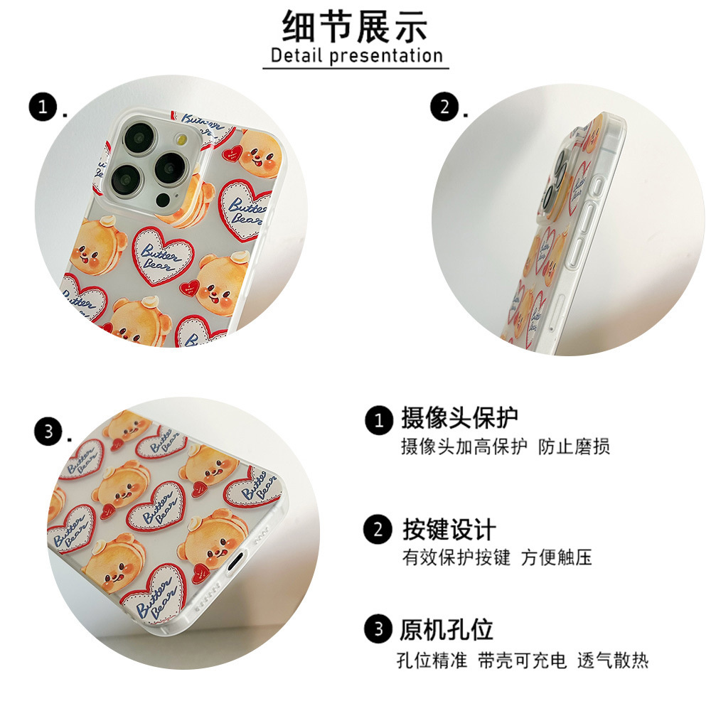 爱心小熊苹果14promax手机壳15保护套11磨砂透明12软壳xsmax大孔