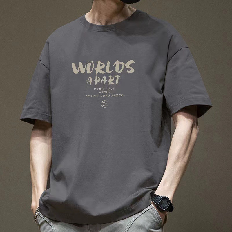 新款水洗重磅短袖t恤男款夏季潮流体恤宽松大码衣服美式复古半袖