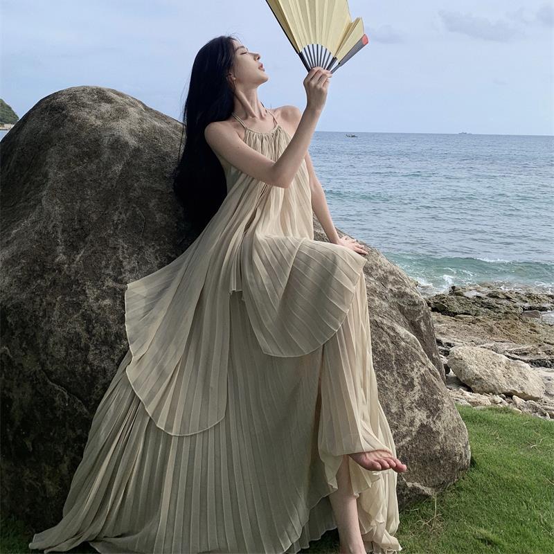 海边度假连衣裙大露背长裙高级氛围拍照女神穿搭性感仙气套装裙子