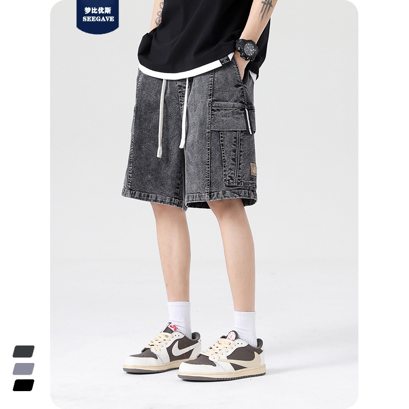 工装牛仔短裤男士新款夏季薄款宽松大码加肥加大胖子五分中裤