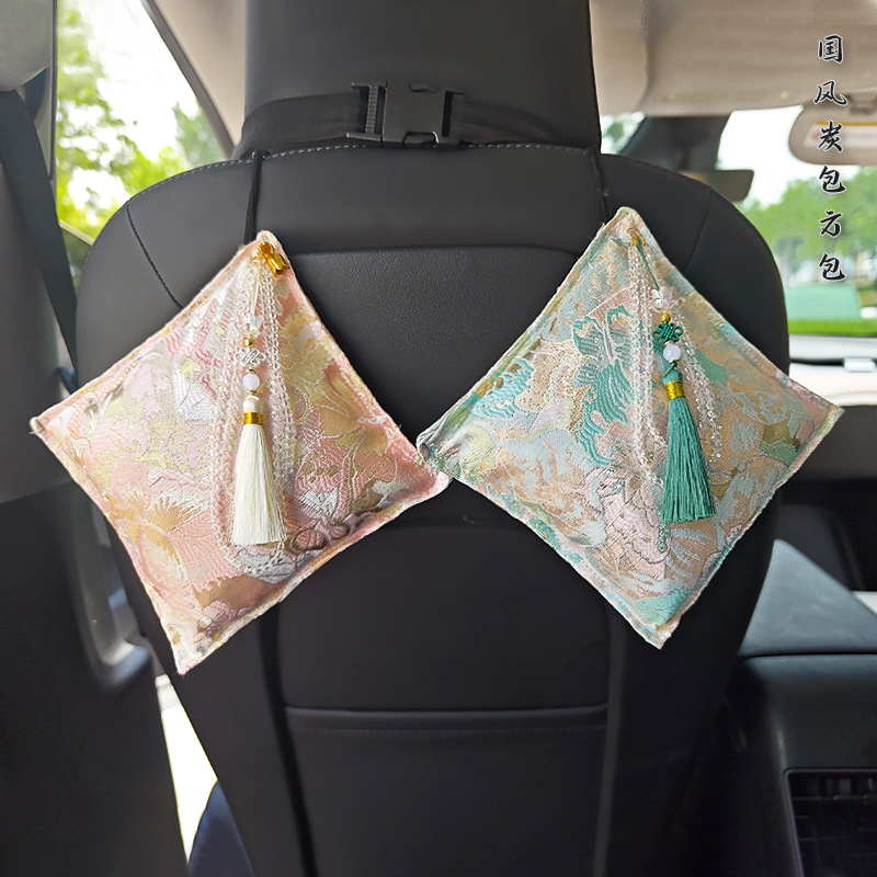 中国风汽车竹炭包 车用除异味清新空气香薰香包 挂式车家两用炭包
