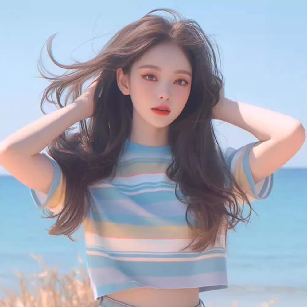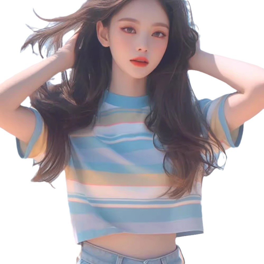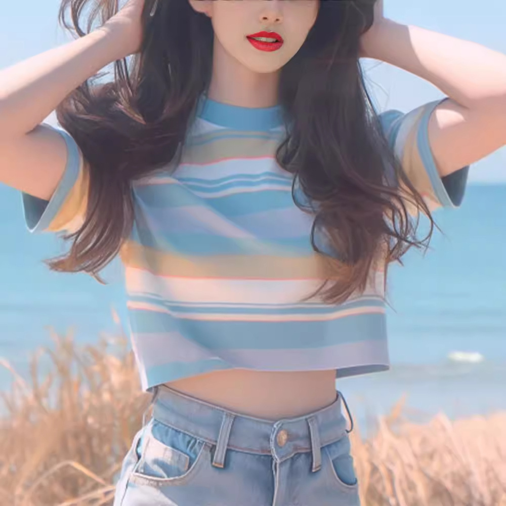 夏季独特别致甜辣妹宽松多巴胺绝美短款上衣设计感蓝色短袖t恤女