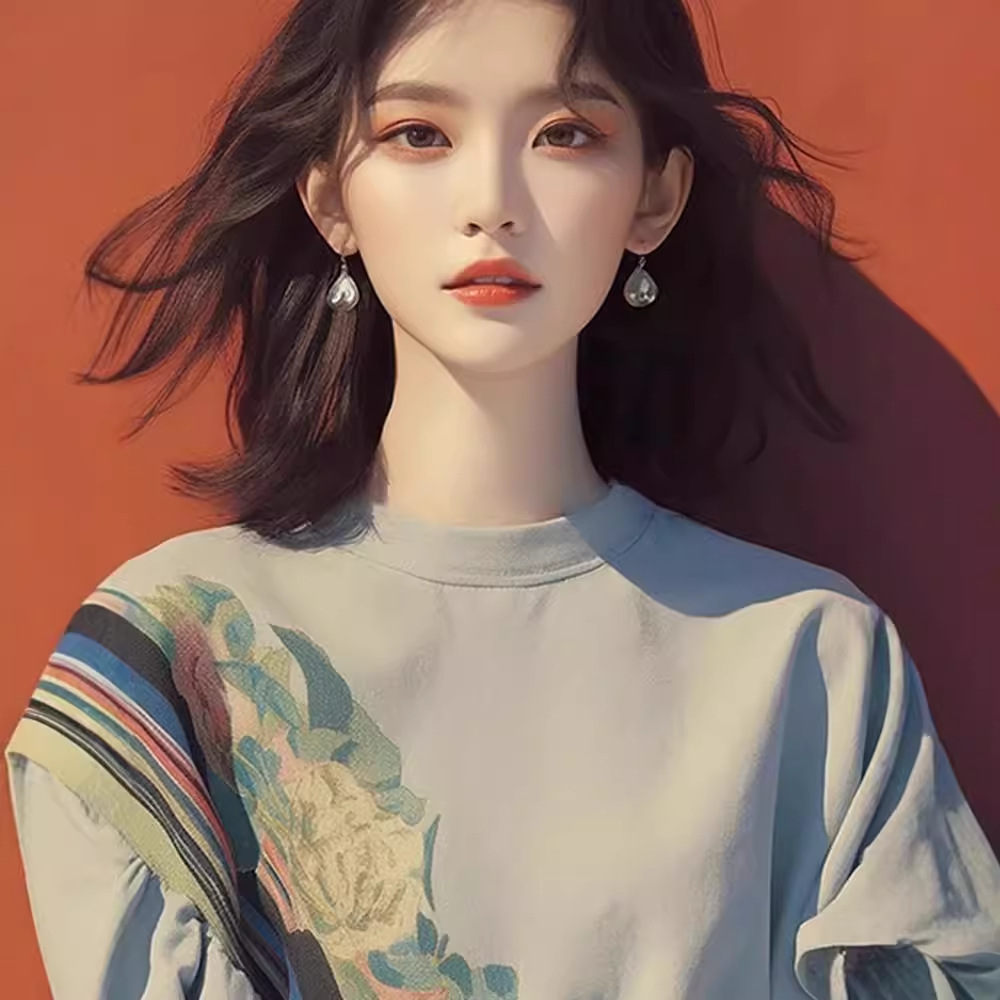 红色郁金香印花短袖t恤女新款高端奢华体恤夏季气质上衣