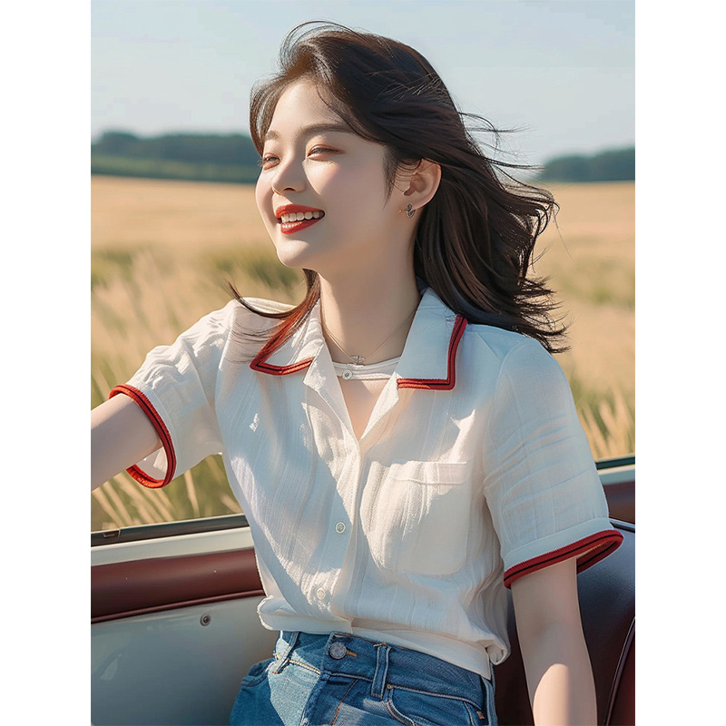 今年夏季流行漂亮小衫法式独特小众设计感巨显瘦白色短袖衬衫女装