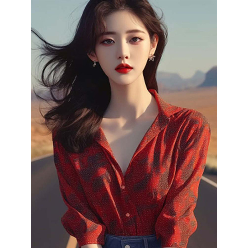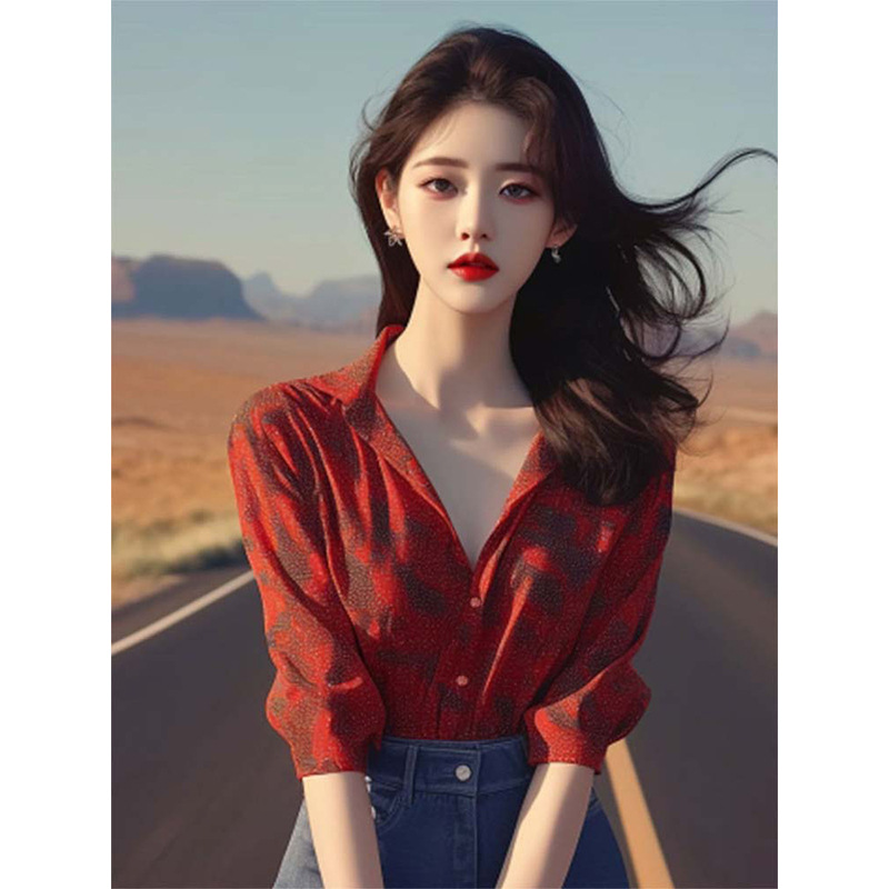 今年流行漂亮洋气独特别致绝美上衣设计感小众红色衬衫新款女