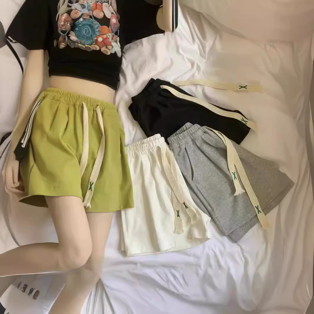 新款抽绳松紧腰休闲运动短裤女宽松显瘦a字阔腿裤子
