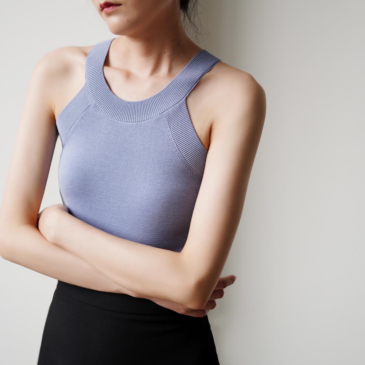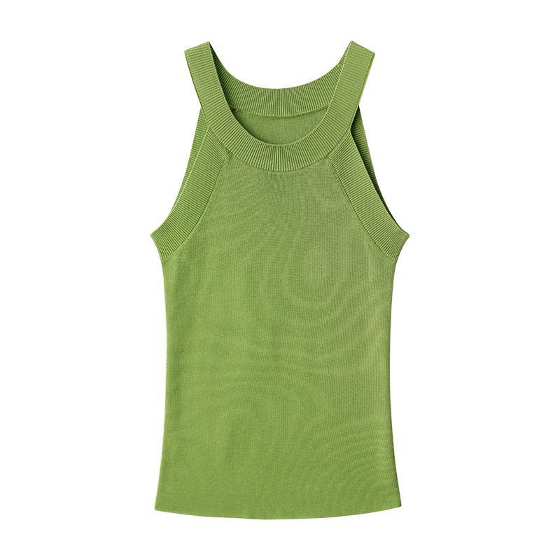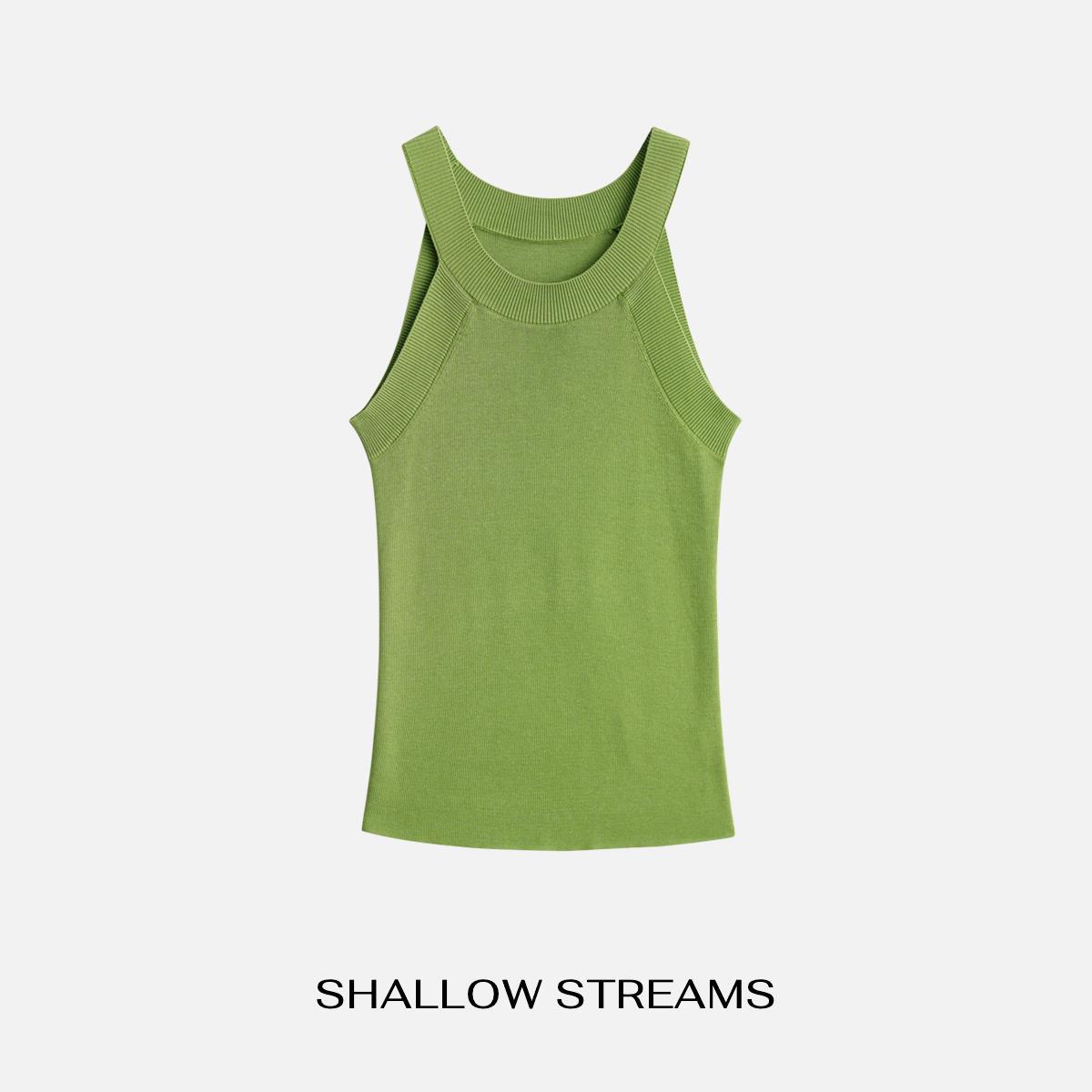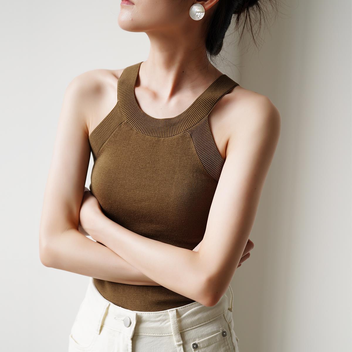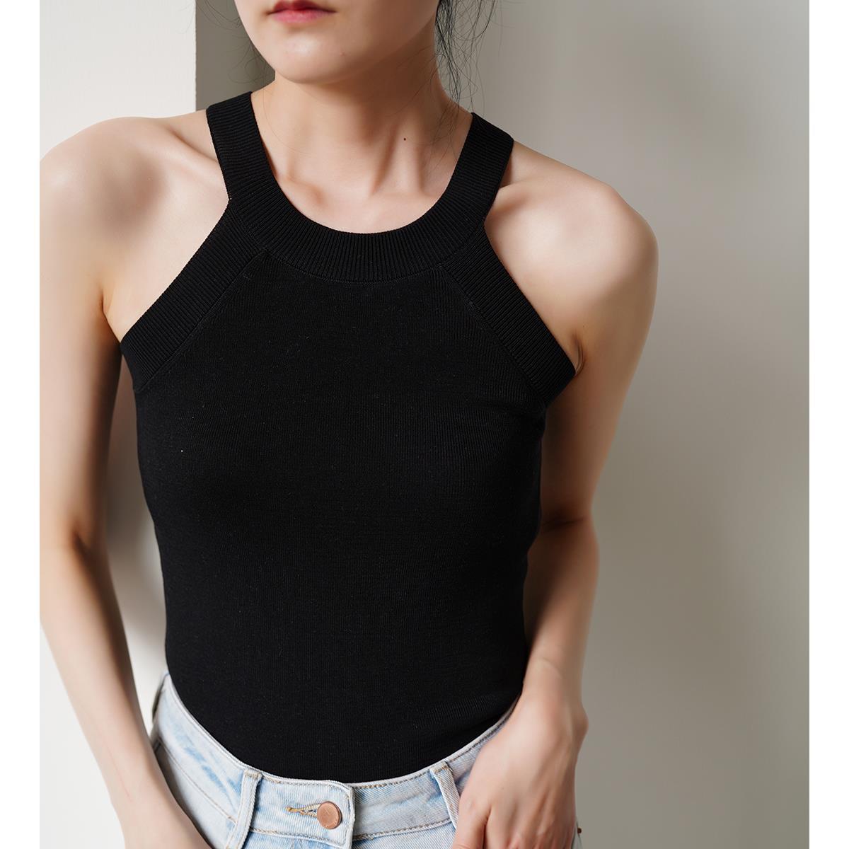 凉感醋酸天丝挂脖露肩针织衫女性感内搭打底上衣