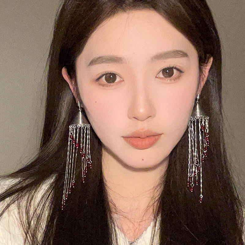 小众复古民族风长款红色流苏耳坠个性螺旋立体感耳钉新中式耳饰女