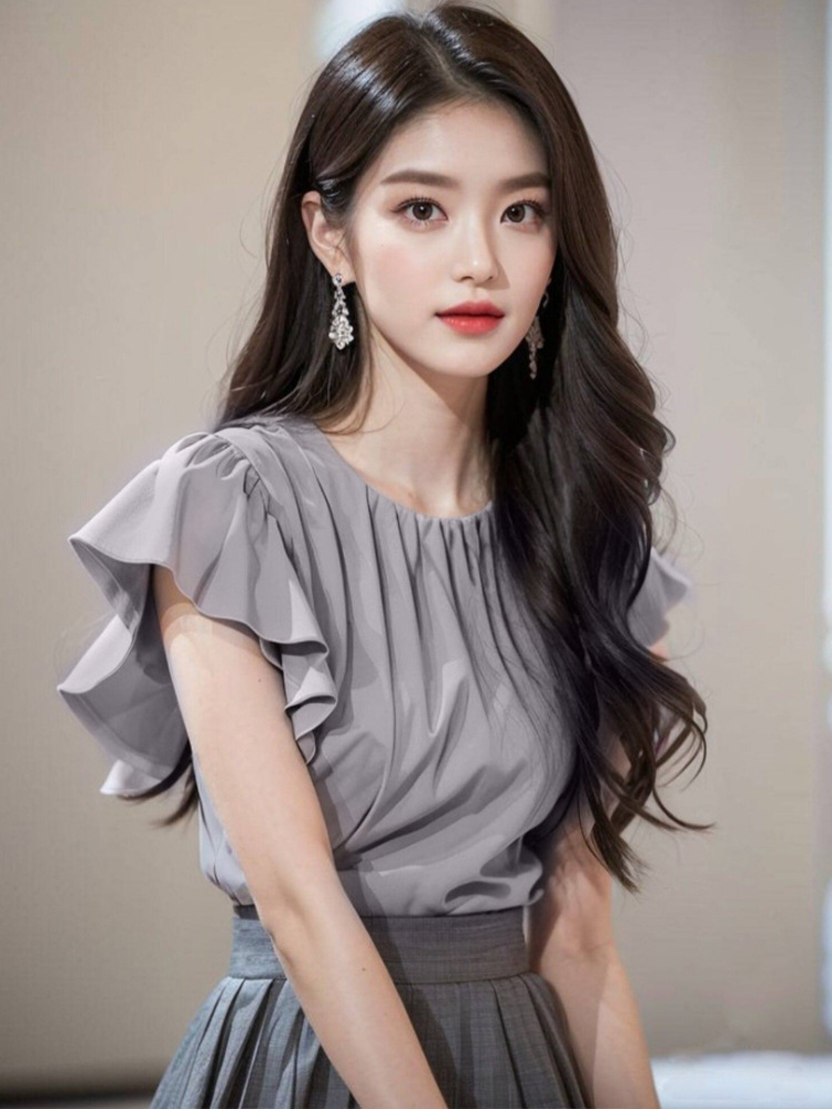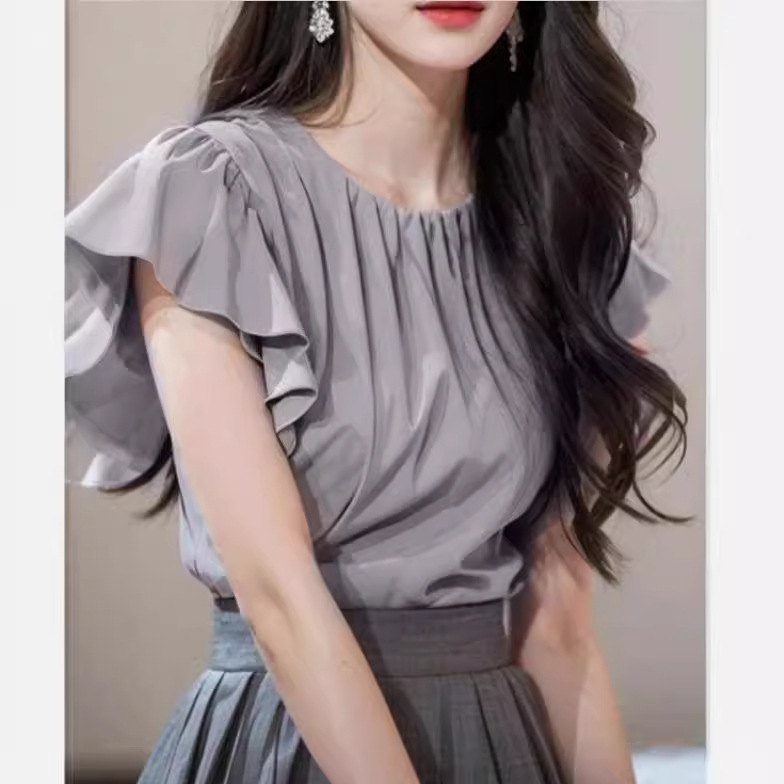 小众设计感上衣夏季新款独特漂亮小衫灰色小飞袖褶皱短袖衬衫