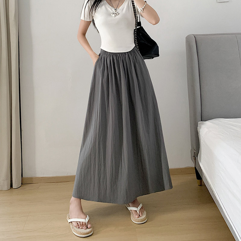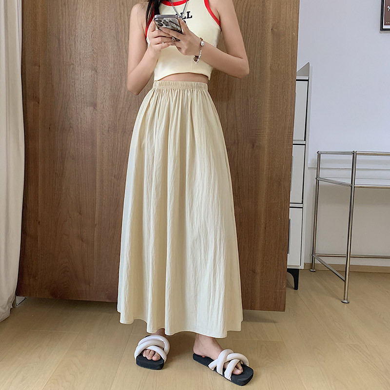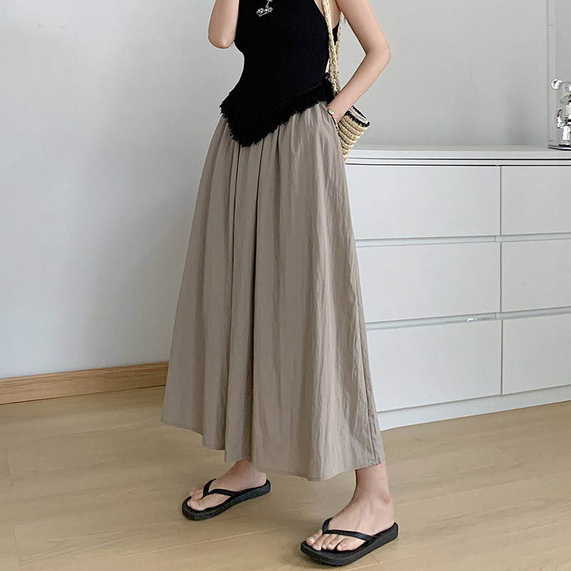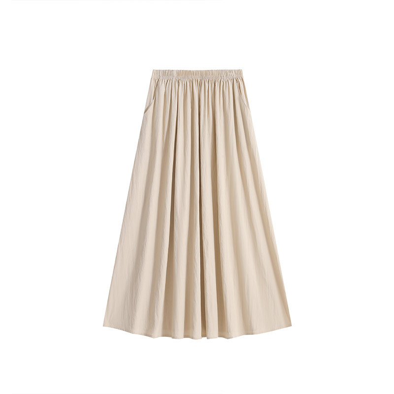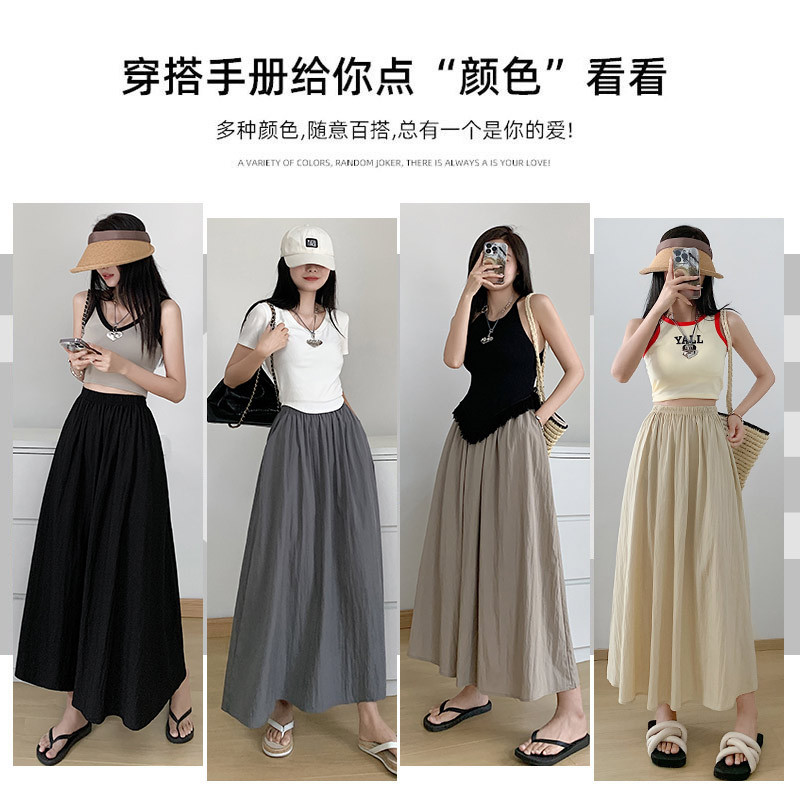 咸菜色山本风半身裙女夏季薄款松紧高腰显瘦垂感a字大摆长裙