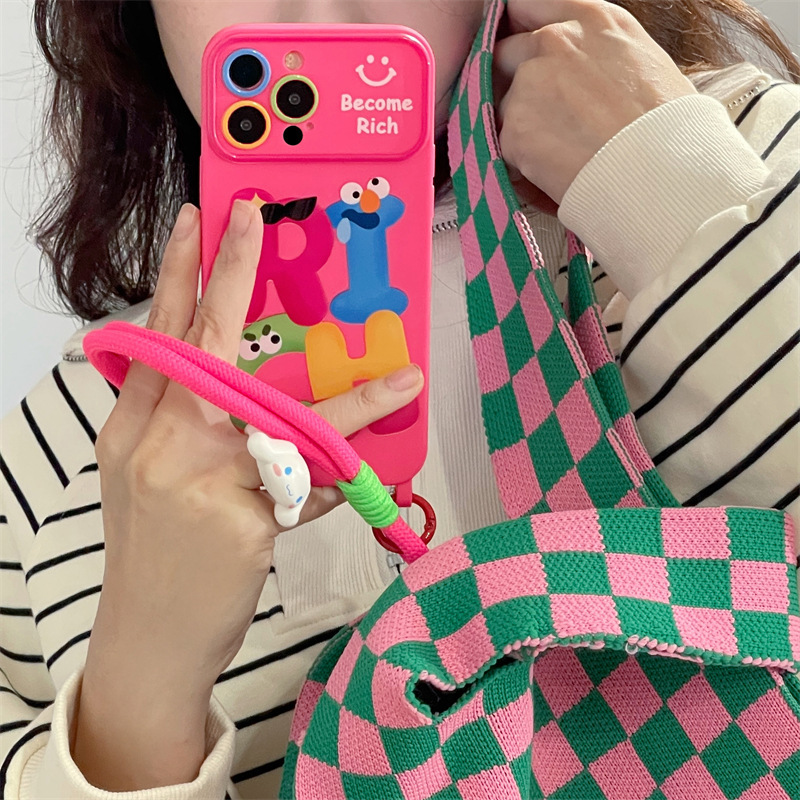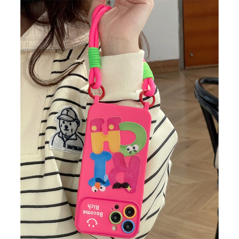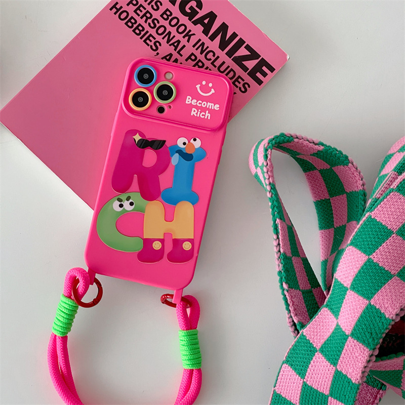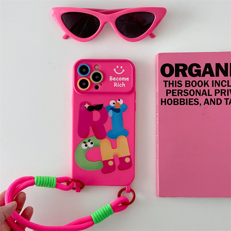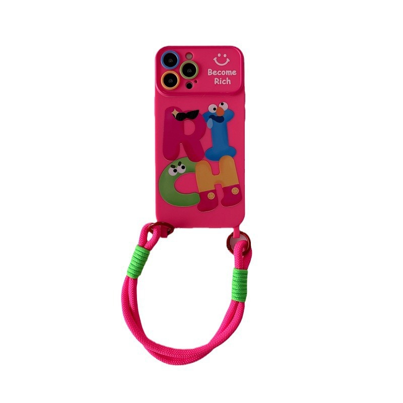 个性RICH英文卡通适用iphone15Promax苹果14手机壳13挂绳11女12软