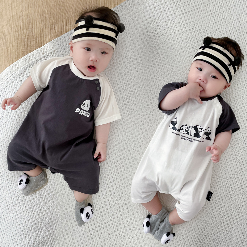 婴儿夏季连体衣短袖纯棉薄款套装小月龄外出服幼儿男宝宝夏装衣服