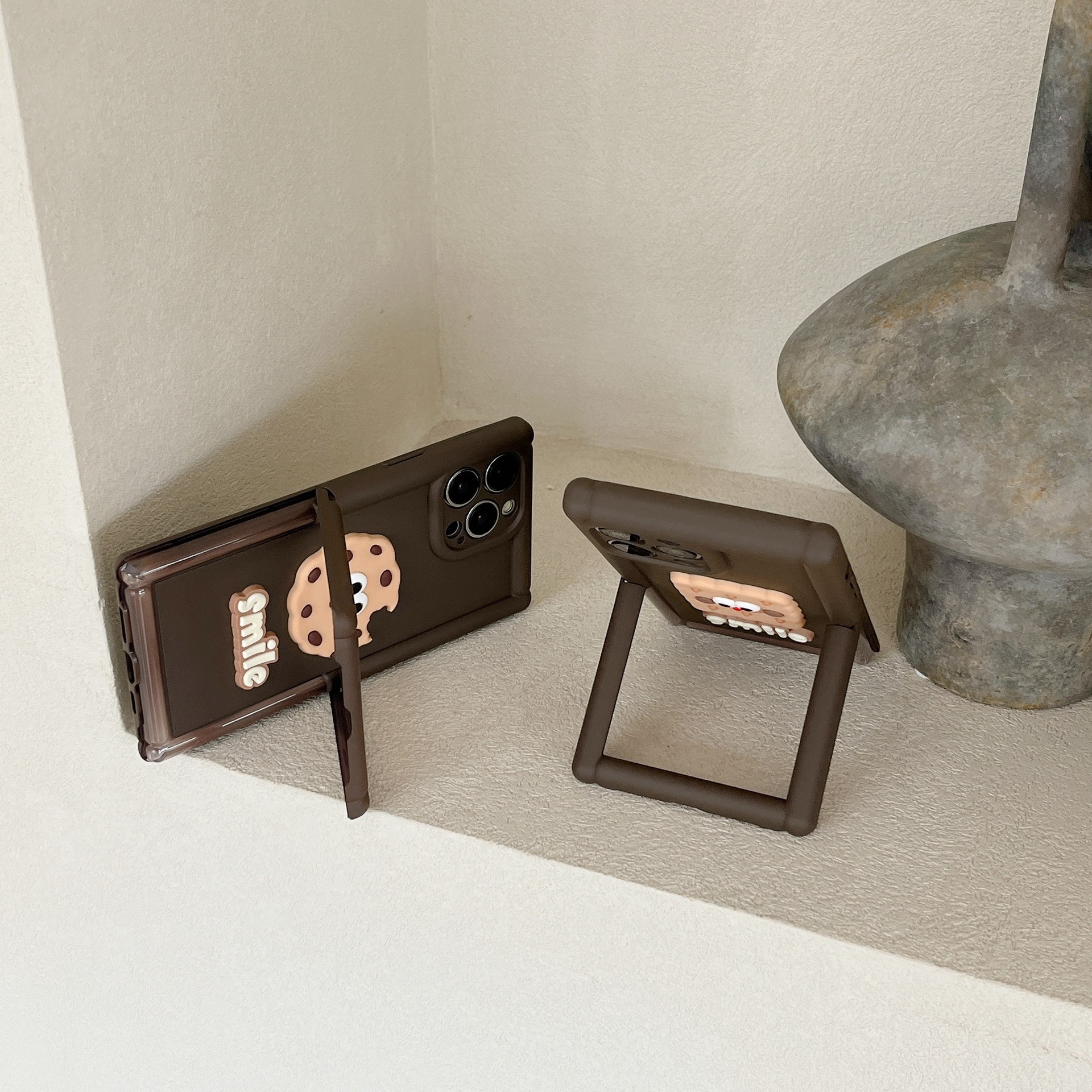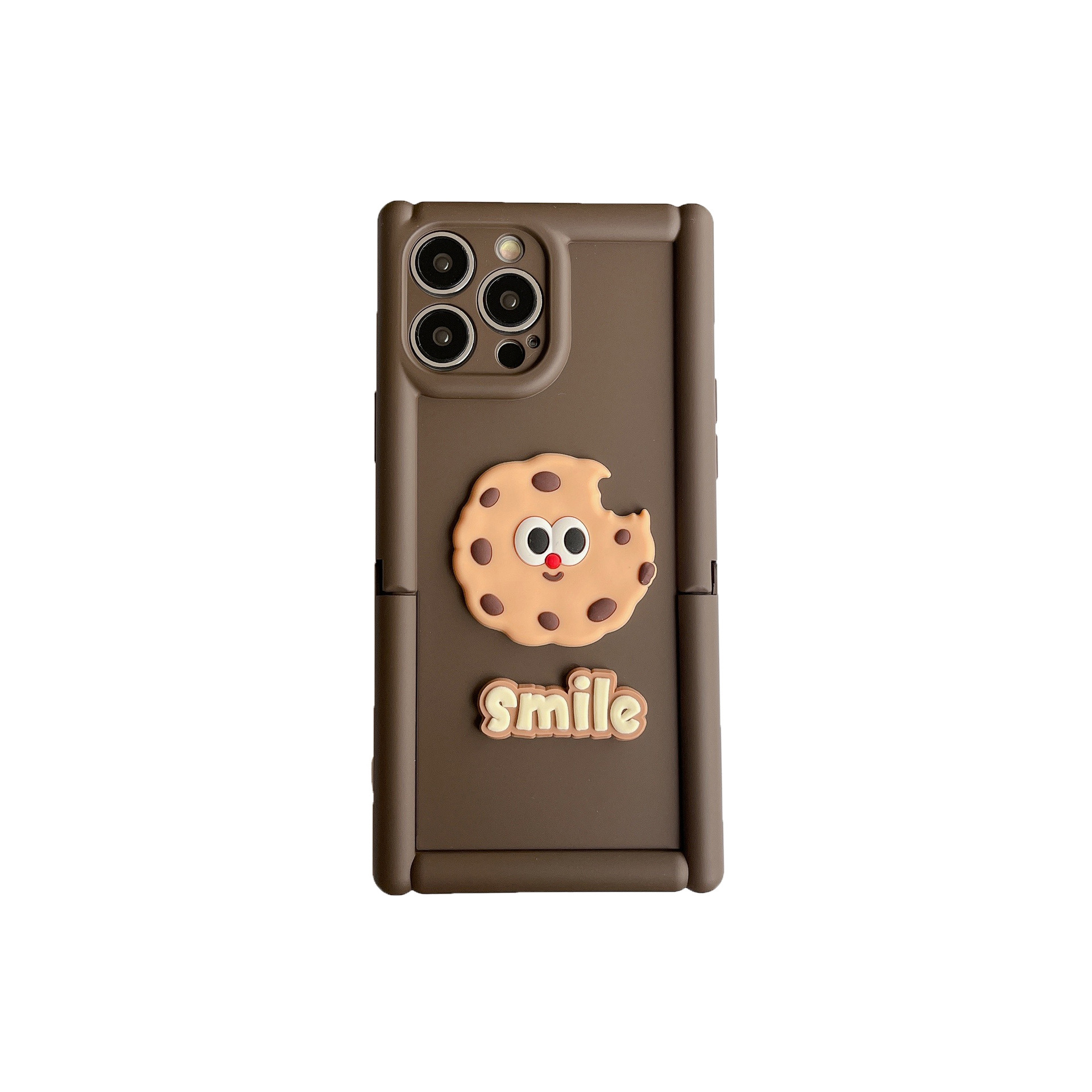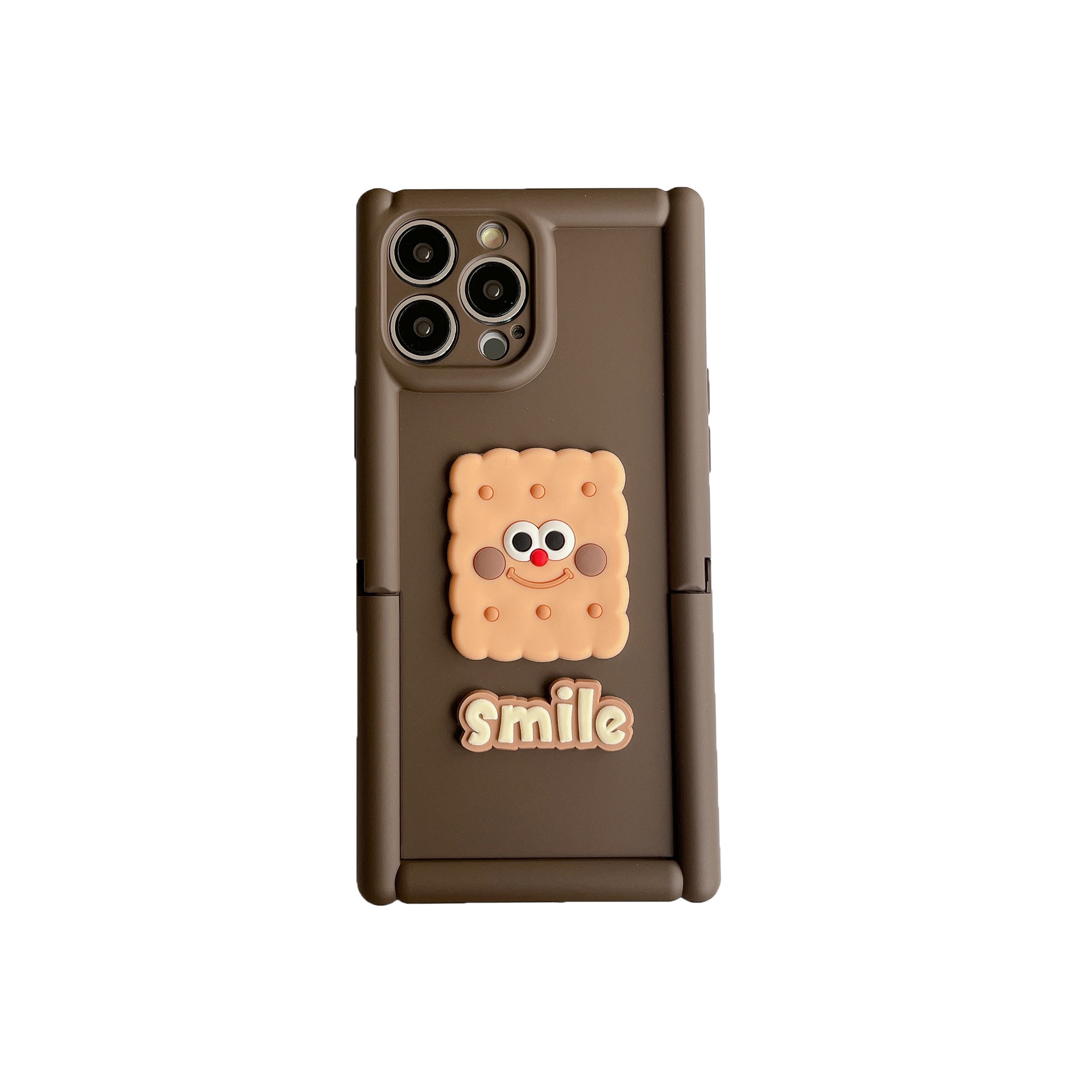 适用苹果15promax手机壳13iPhone12罗马支架DIYsmile饼干高颜值