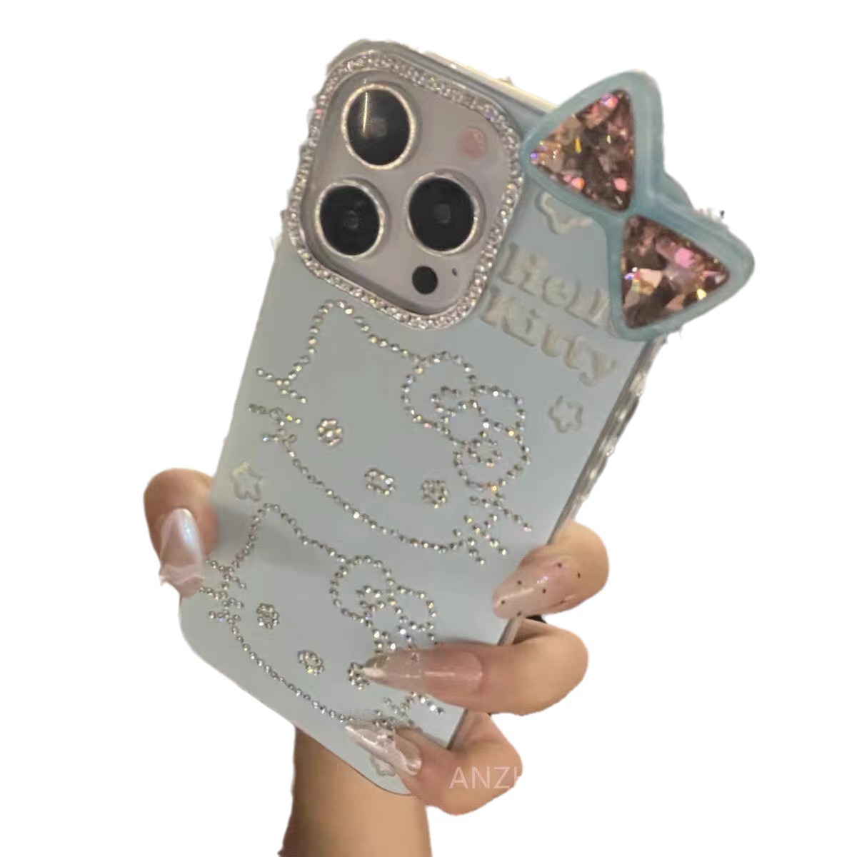 可爱奶蓝水钻kitty蝴蝶结适用iPhone15promax苹果14手机壳13女12