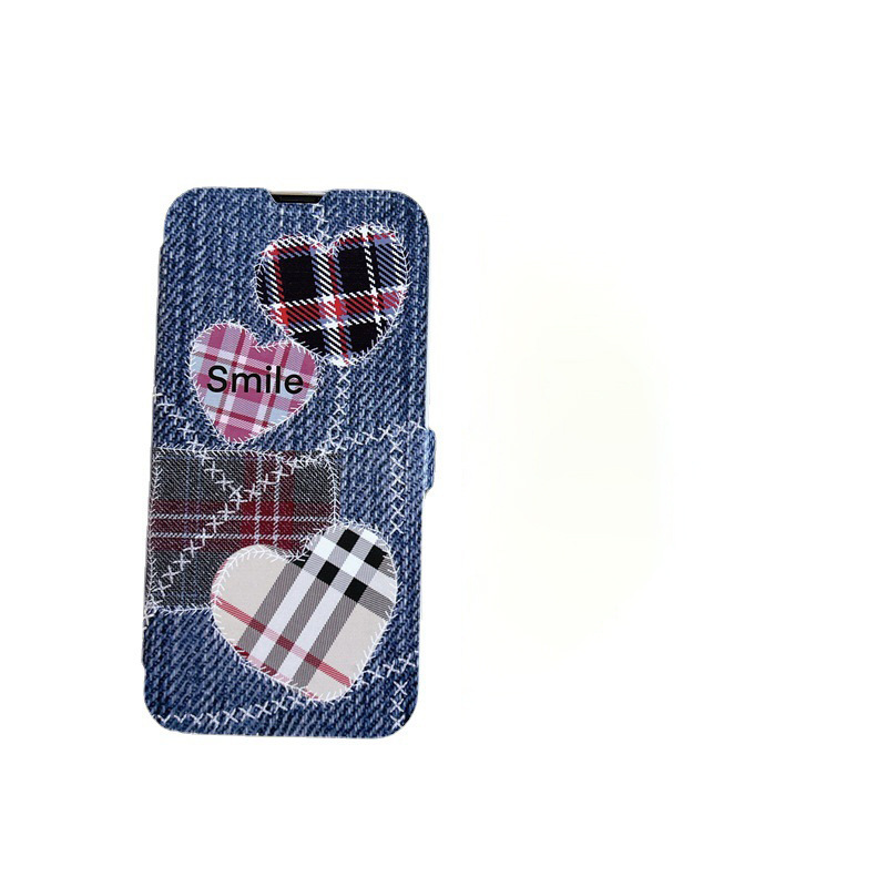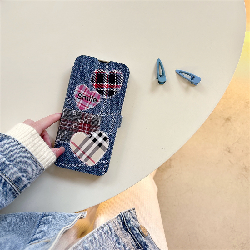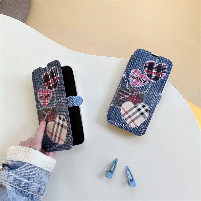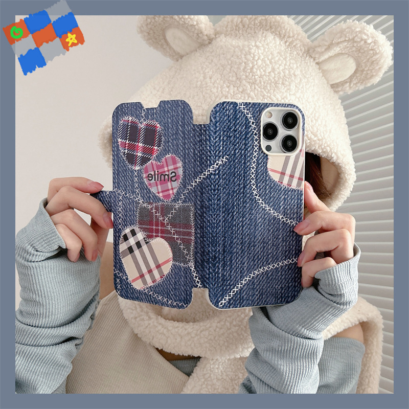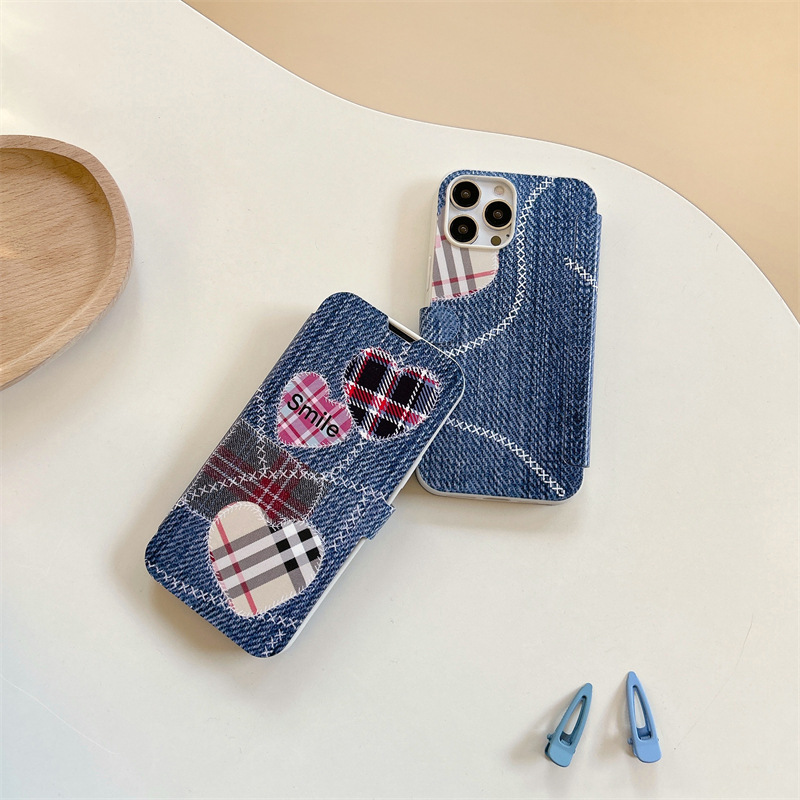 翻盖牛仔格纹爱心适用iPhone14创意12ProMax手机壳苹果13新款11女