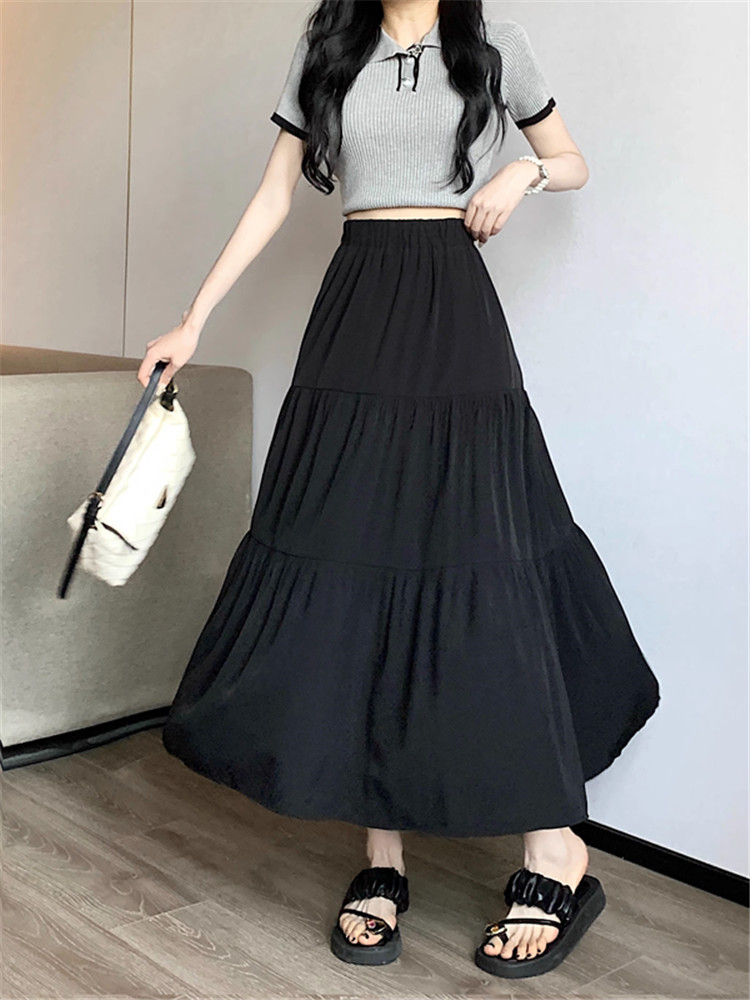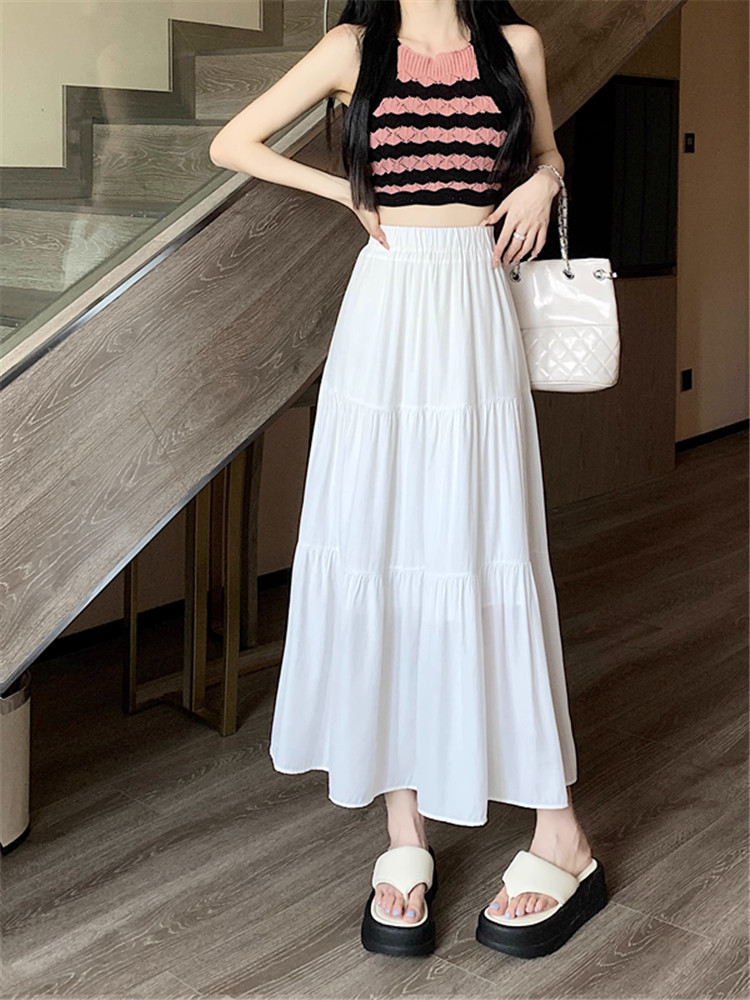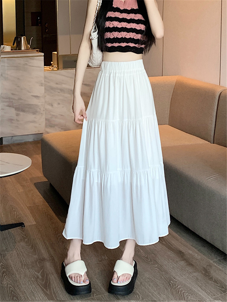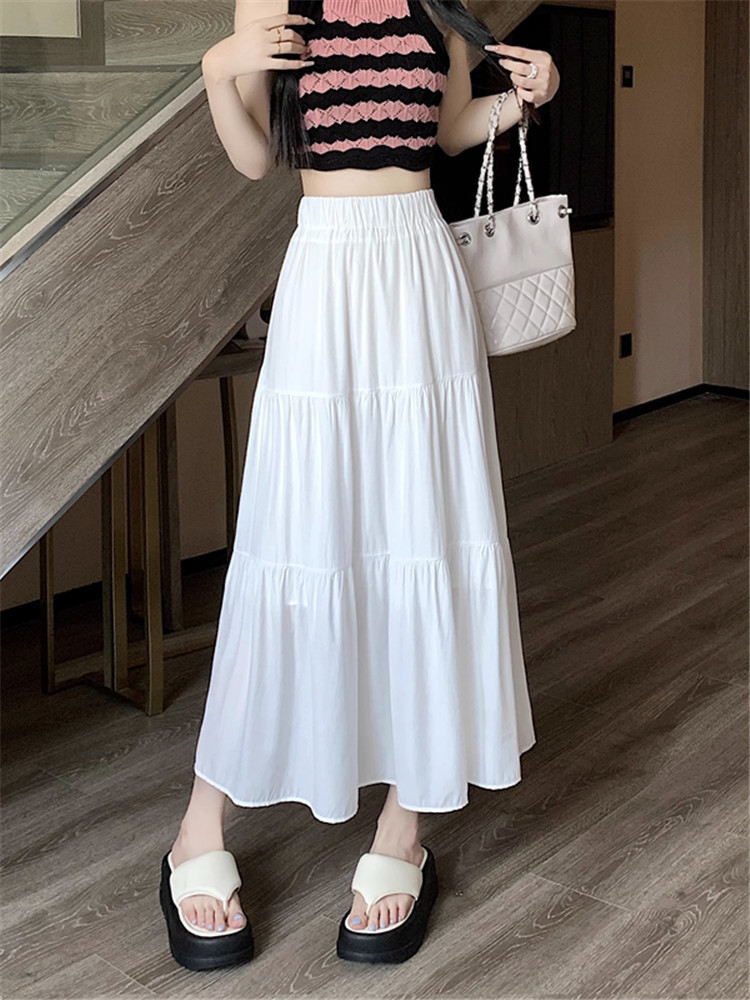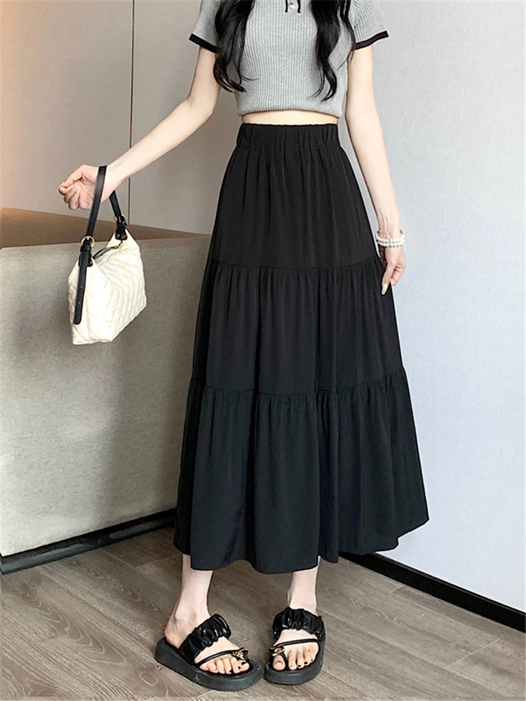夏季新款高腰显瘦a字百褶气质半身裙女中长款小个子遮胯裙子