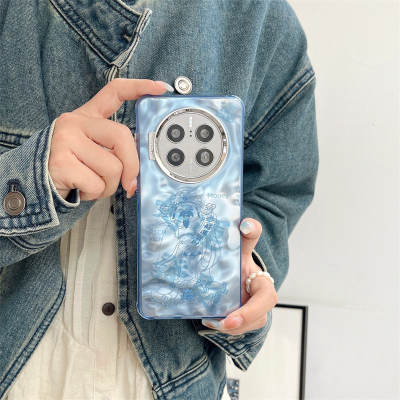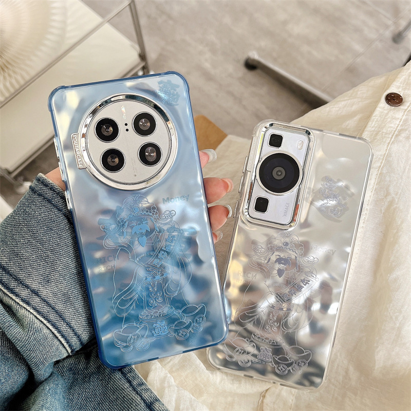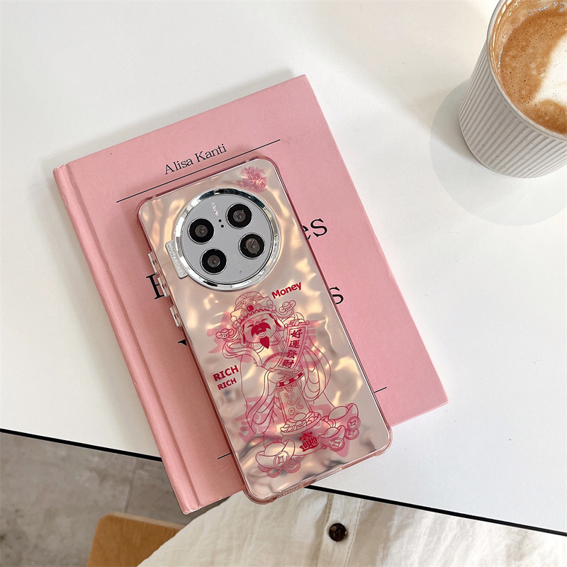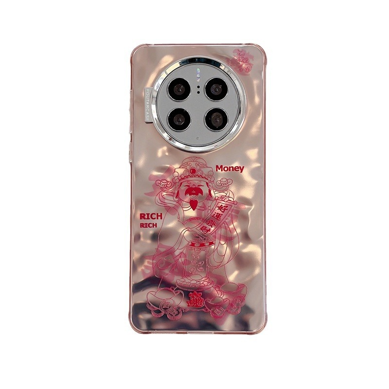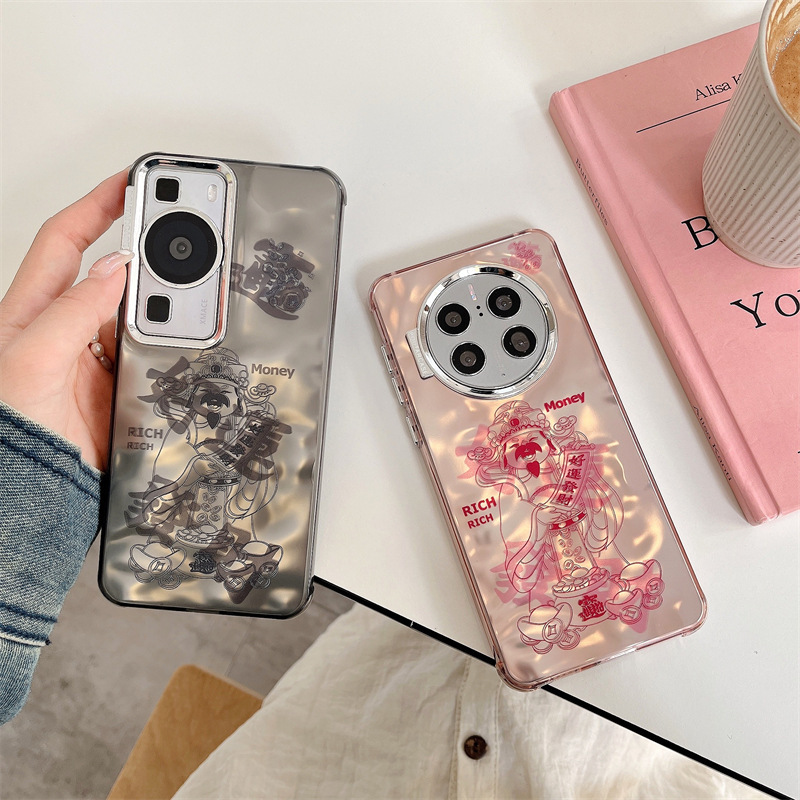 电镀国风好运财神爷适用华为mate60Pro手机壳P50E情侣Nova9水波纹