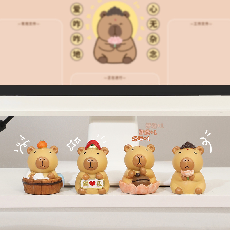 卡皮巴拉豚鼠佛系公仔工位搭子桌面摆件创意网红潮玩手办女生礼物
