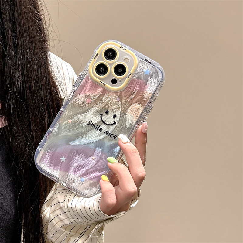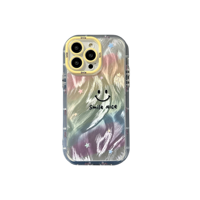 晕染羽纱彩虹笑脸适用iphone15Promax苹果14手机壳13女12高级感11