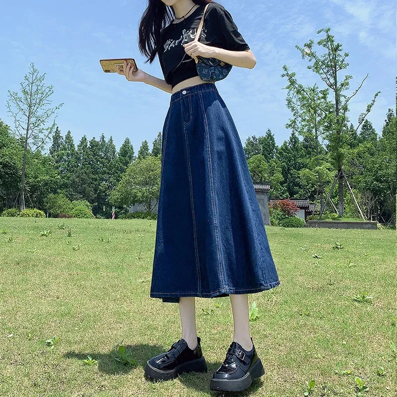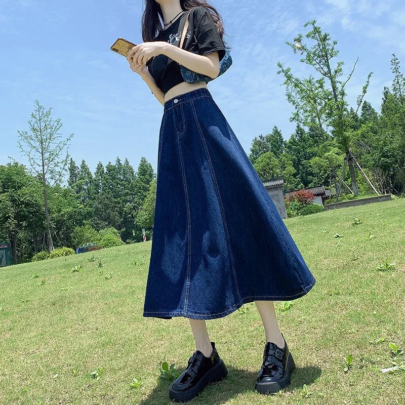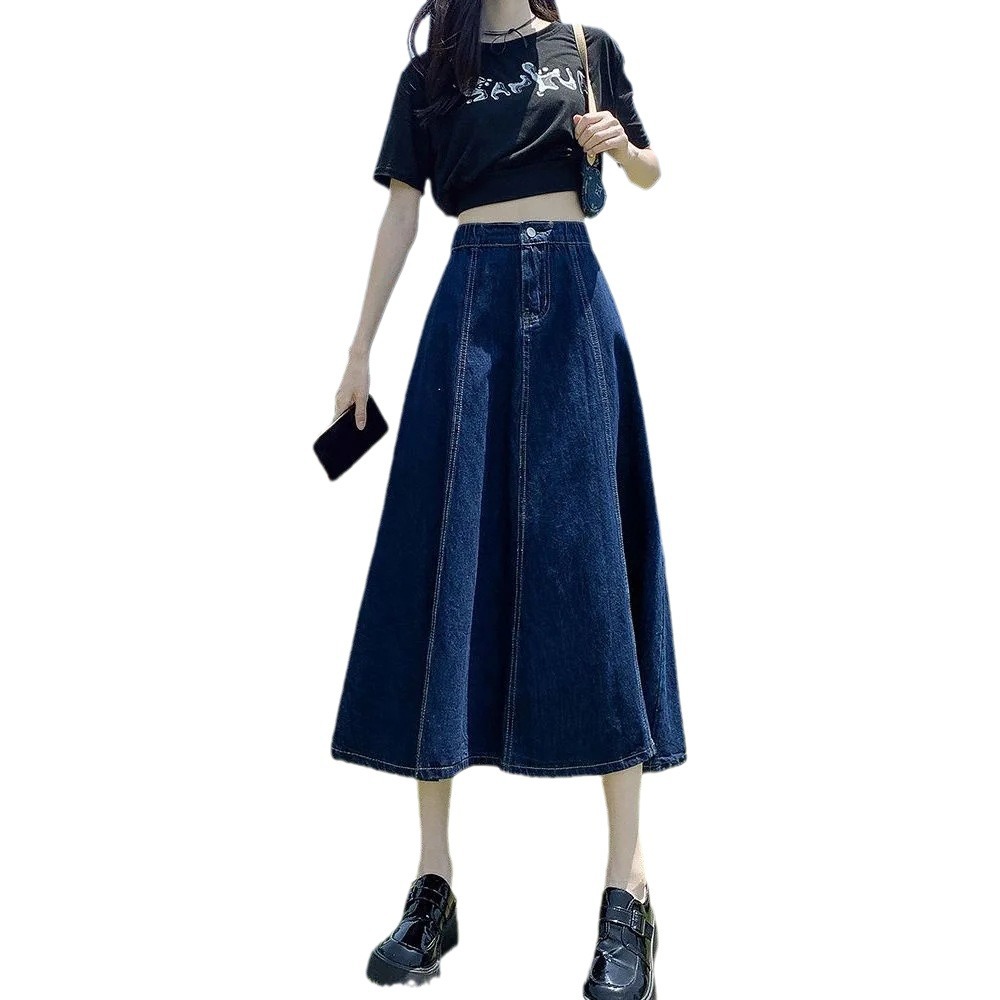 半身裙女长裙新款春夏中长款牛仔裙百褶高腰薄款裙子a字伞裙
