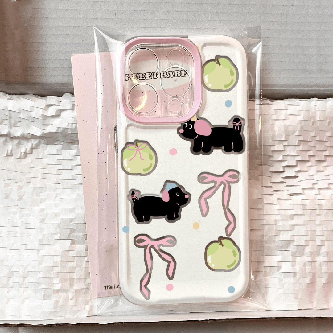 黑粉小狗适用苹果15PROMAX手机壳iPhone14可爱13透明12软壳11卡通