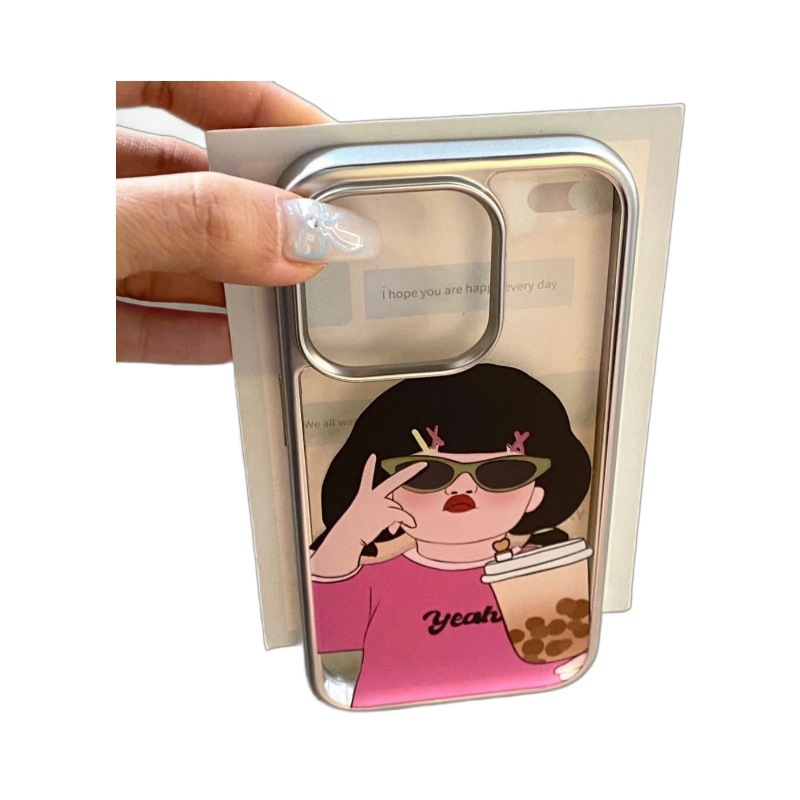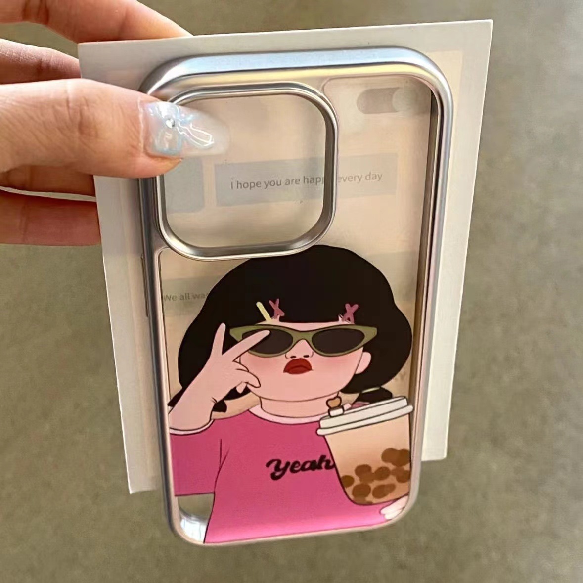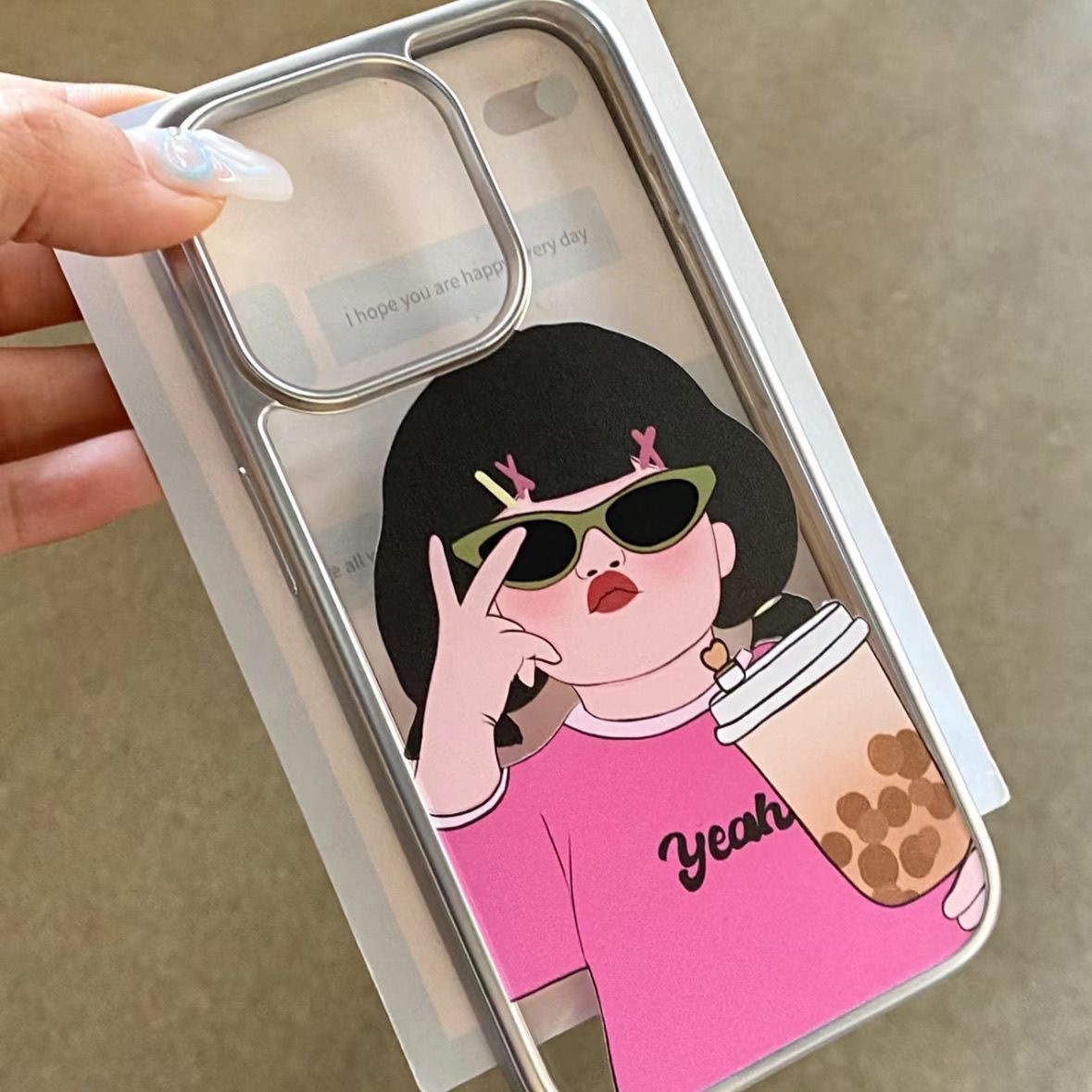 比耶奶茶女孩适用苹果15/14/13promax手机壳新款12/11软壳xr/xs7p