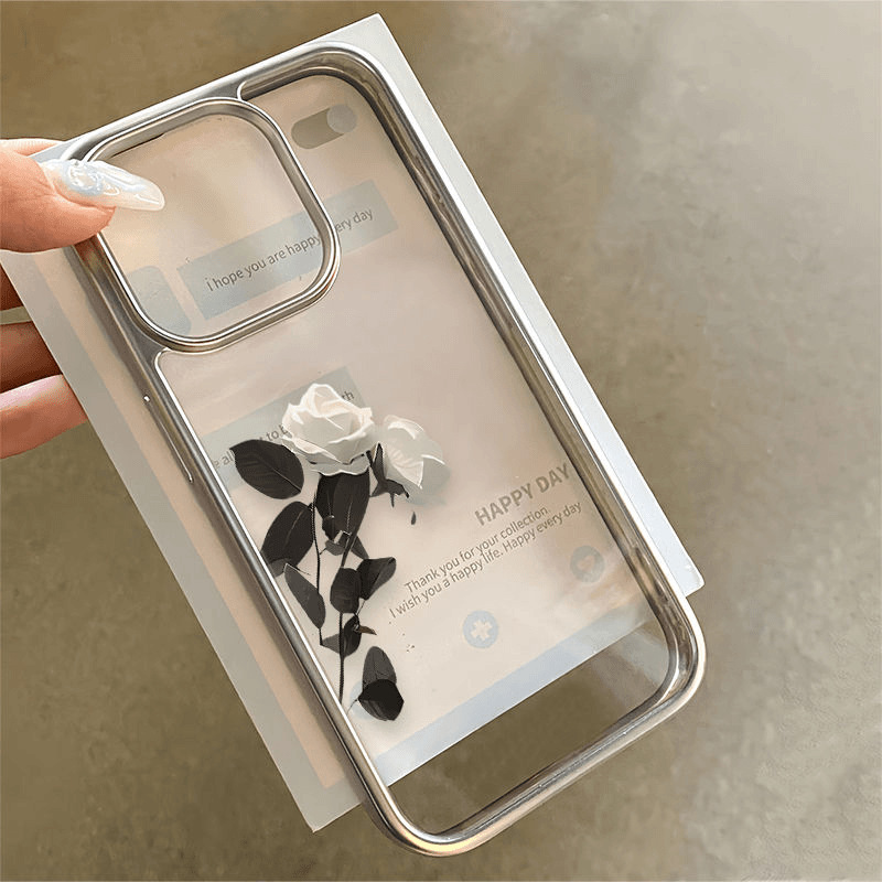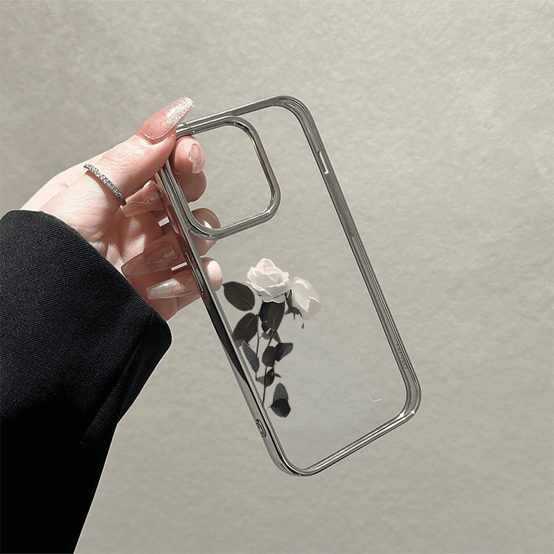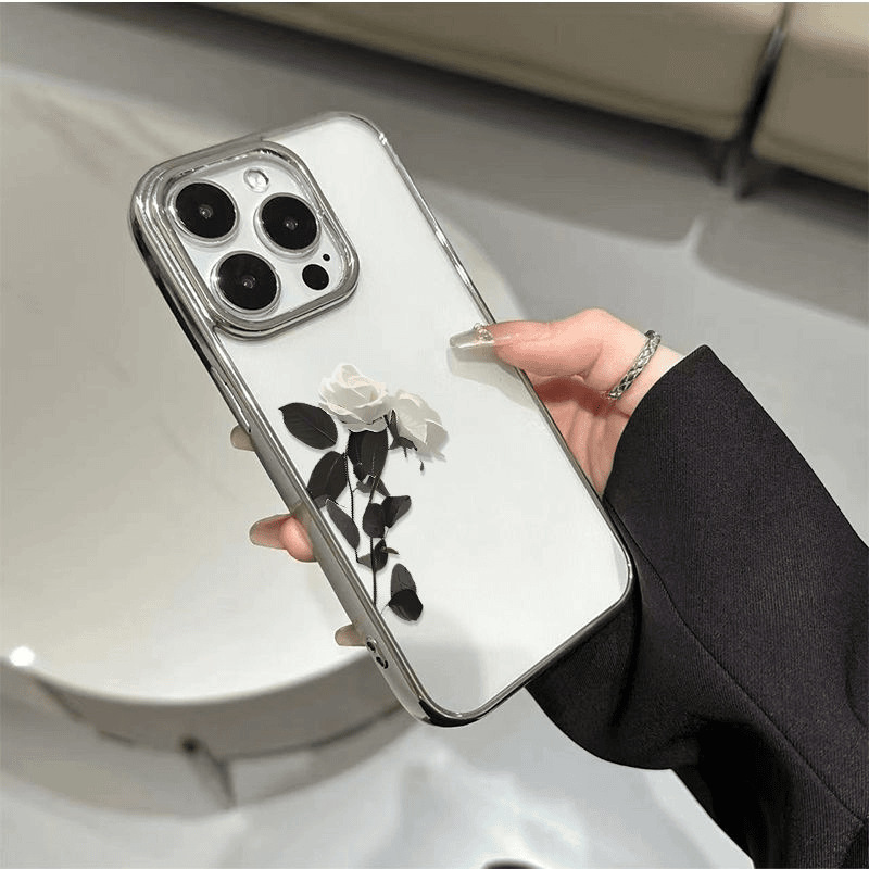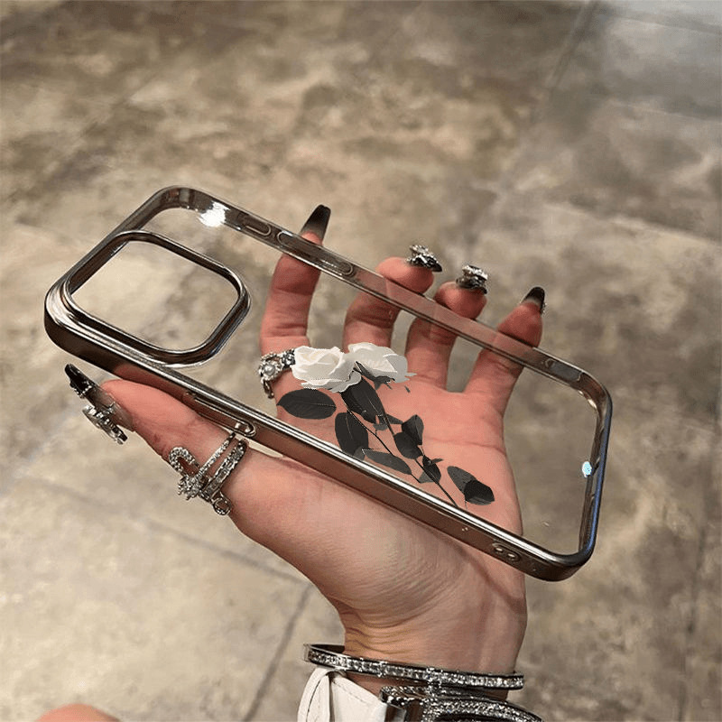 白色玫瑰花适用iPhone15苹果14手机壳13promax电镀透明创意保护套