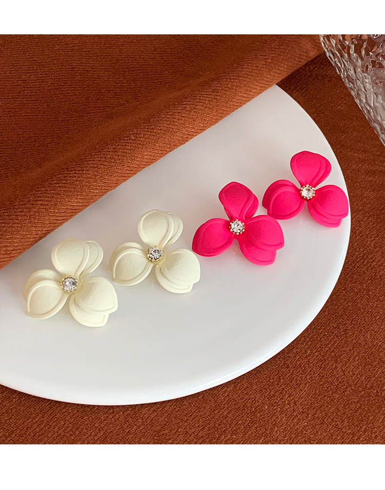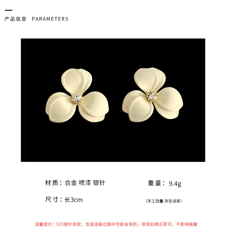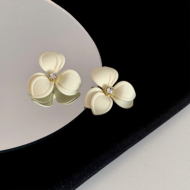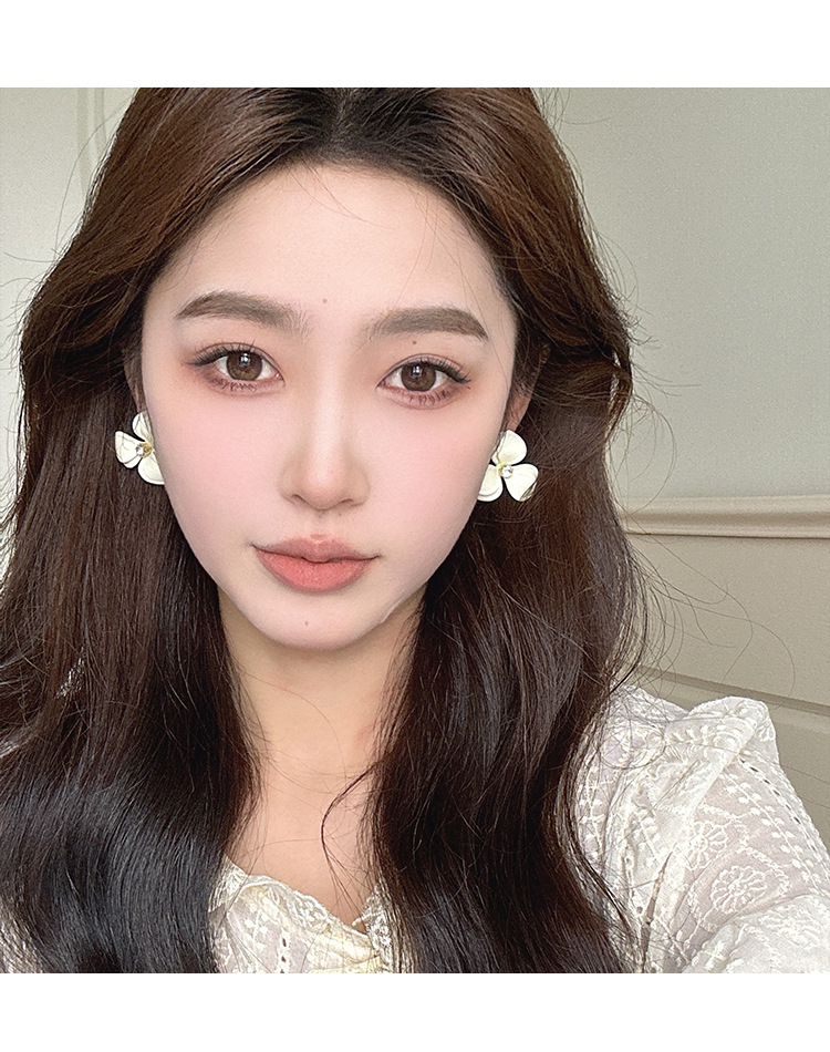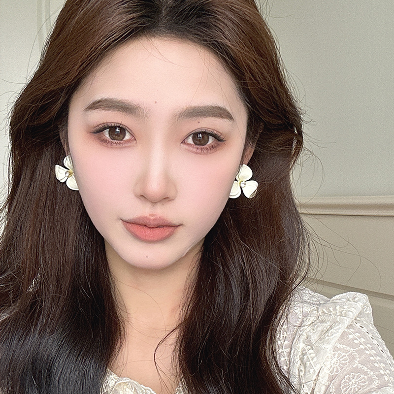 法式复古奶白色花朵烤漆耳环女轻奢高级感小众设计感耳钉气质耳饰