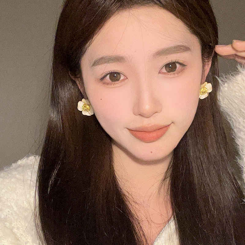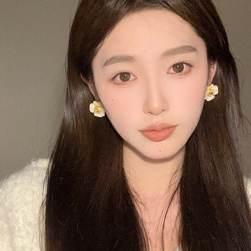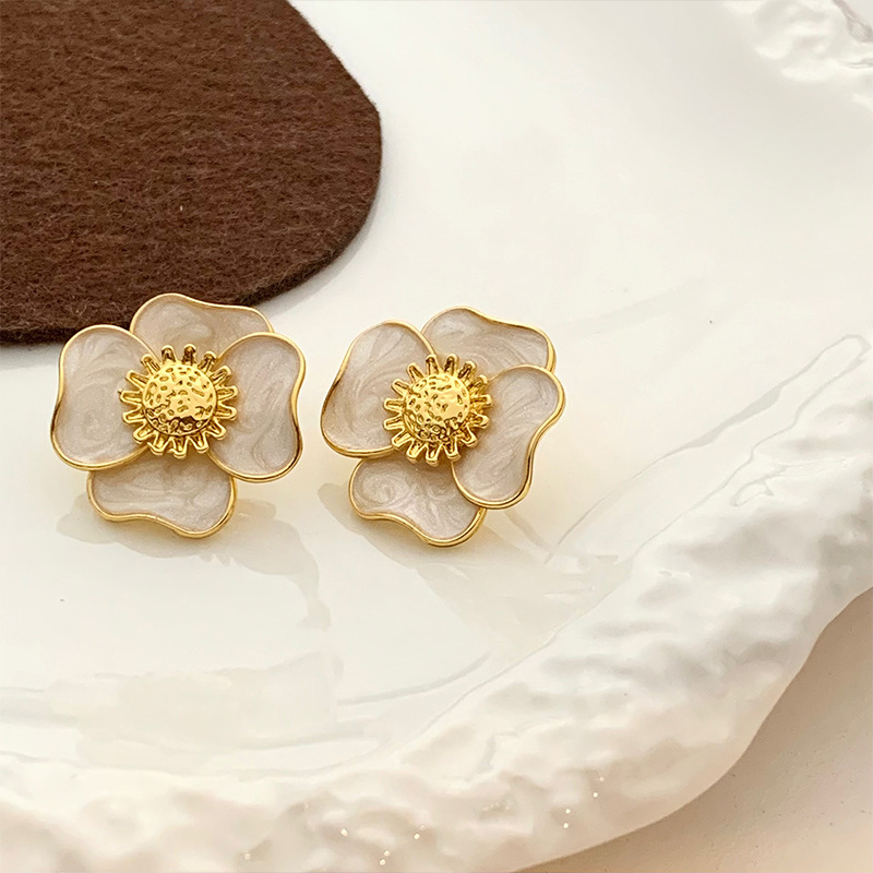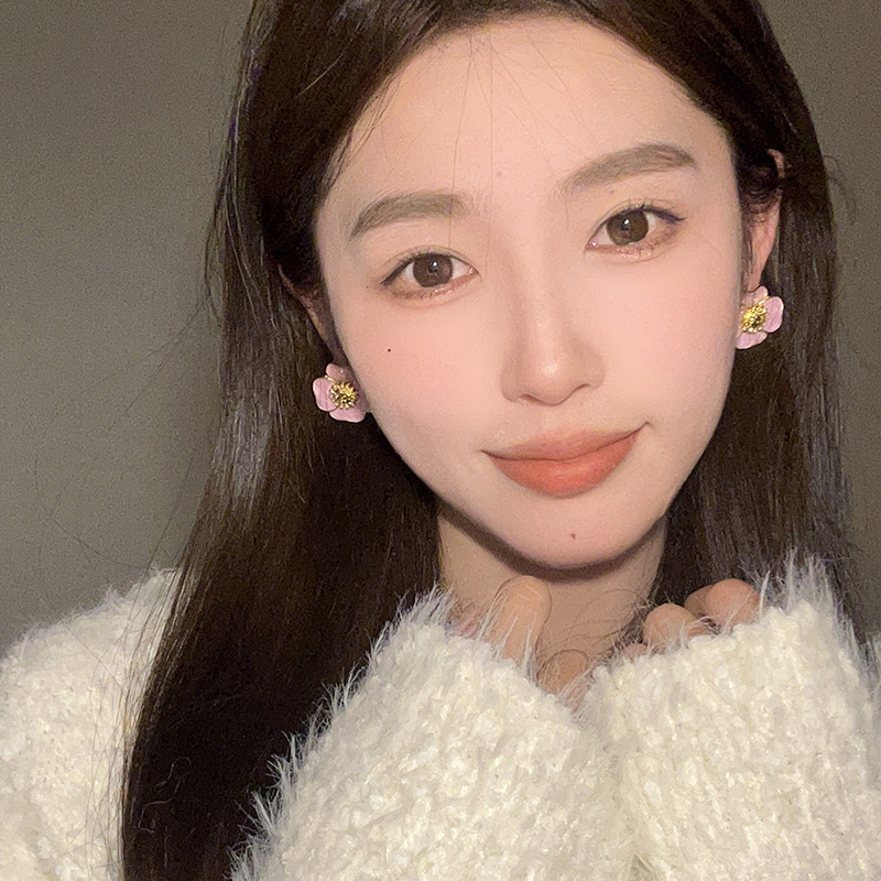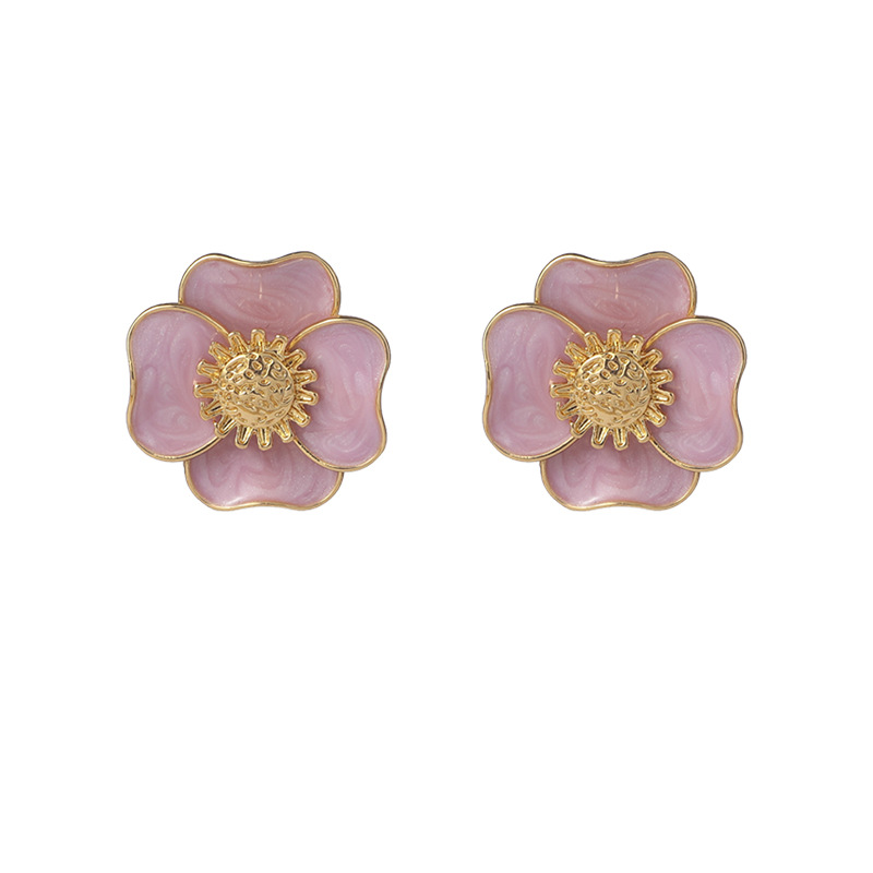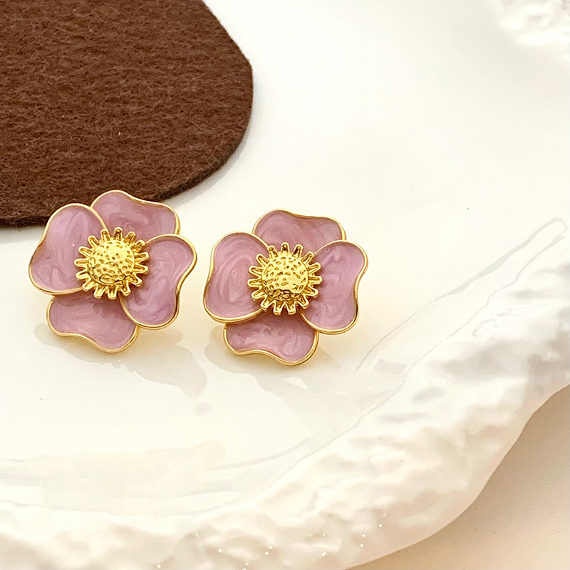 复古珐琅花朵耳环女气质小众中古格调滴釉耳钉新款百搭耳饰潮