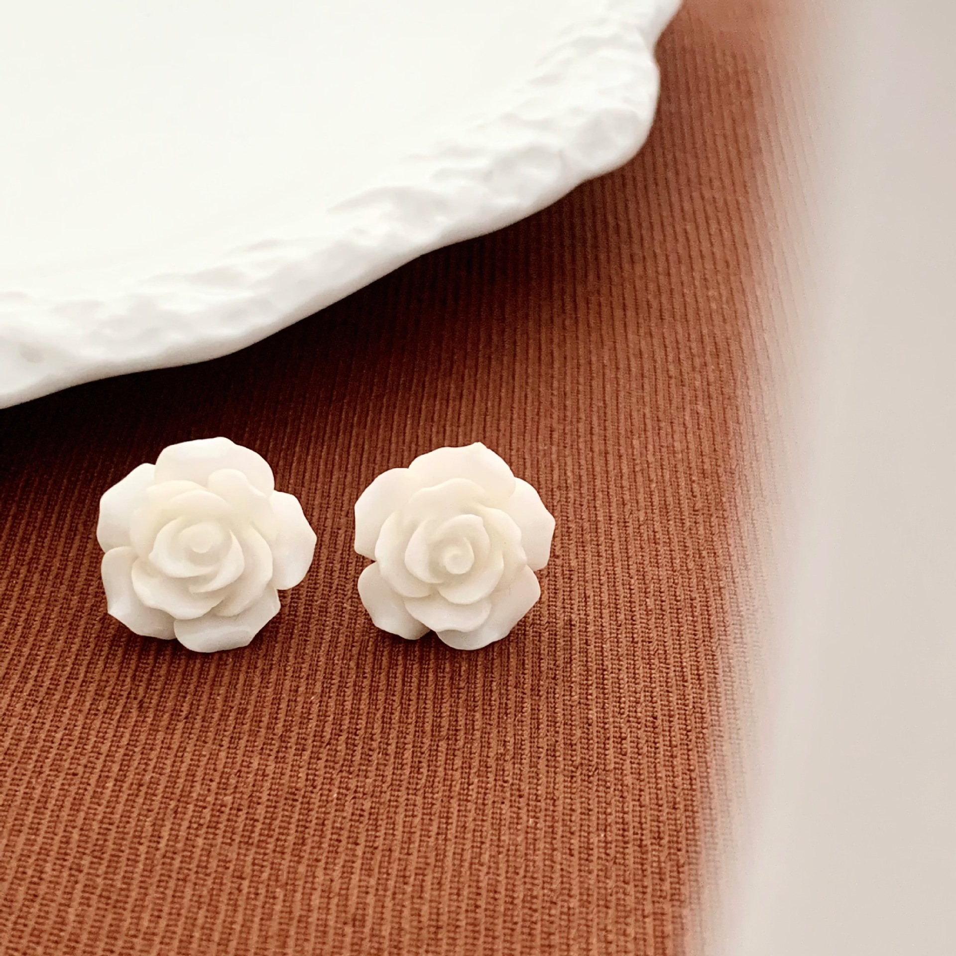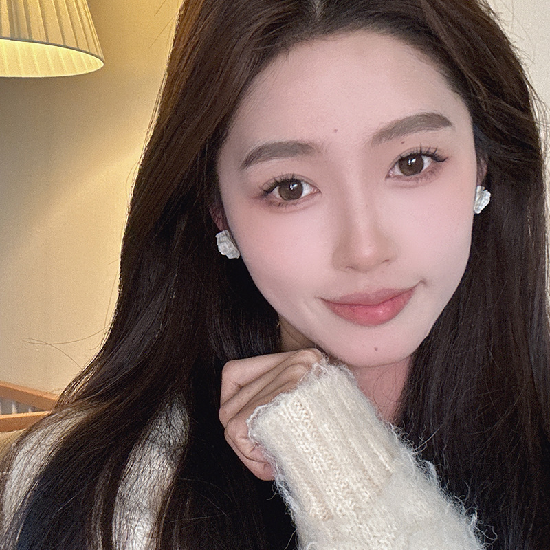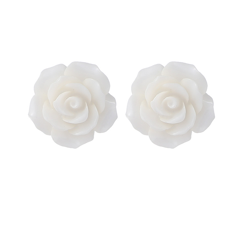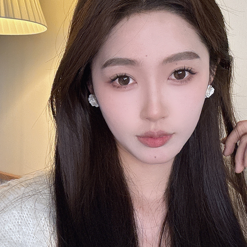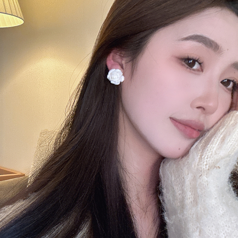 法式复古港风设计感玫瑰花朵耳钉女气质优雅白山茶耳环小众耳饰潮