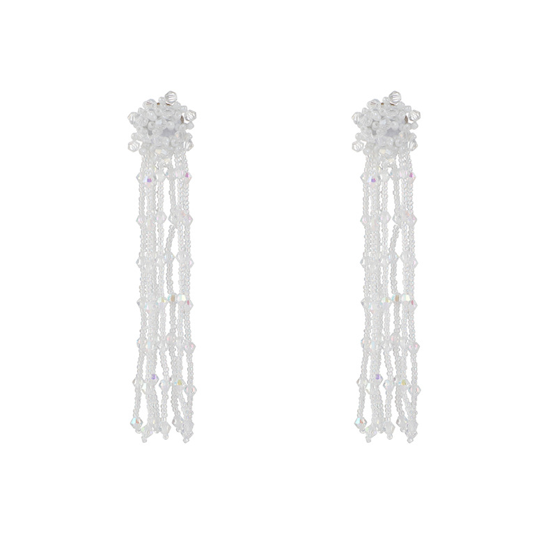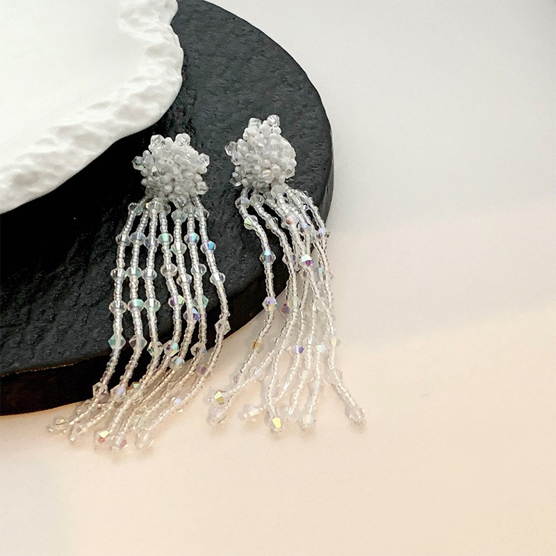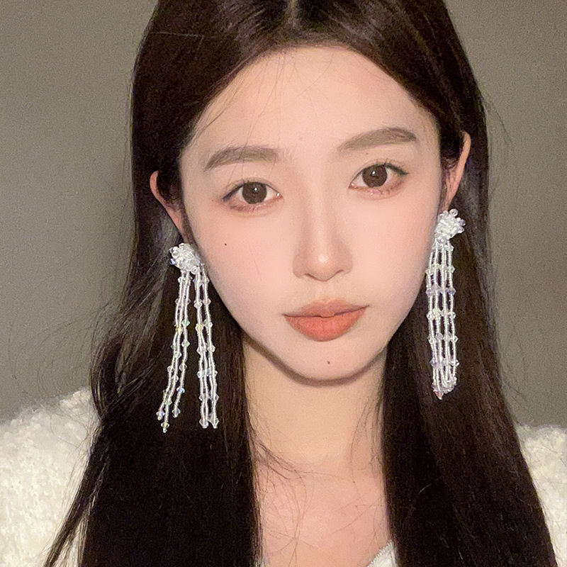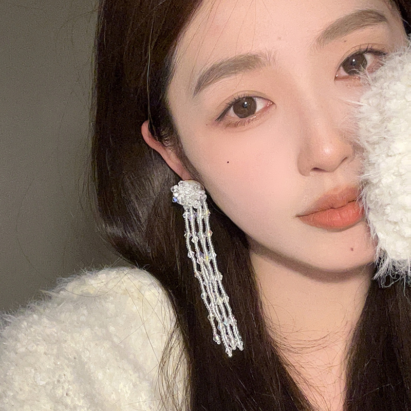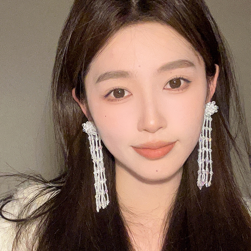 法式超仙花朵串珠流苏耳环小众设计感气质长款耳坠高级感百搭耳饰
