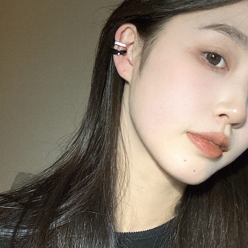 ins小众冷淡风黑白撞色双层耳夹气质设计感无耳洞耳骨夹
